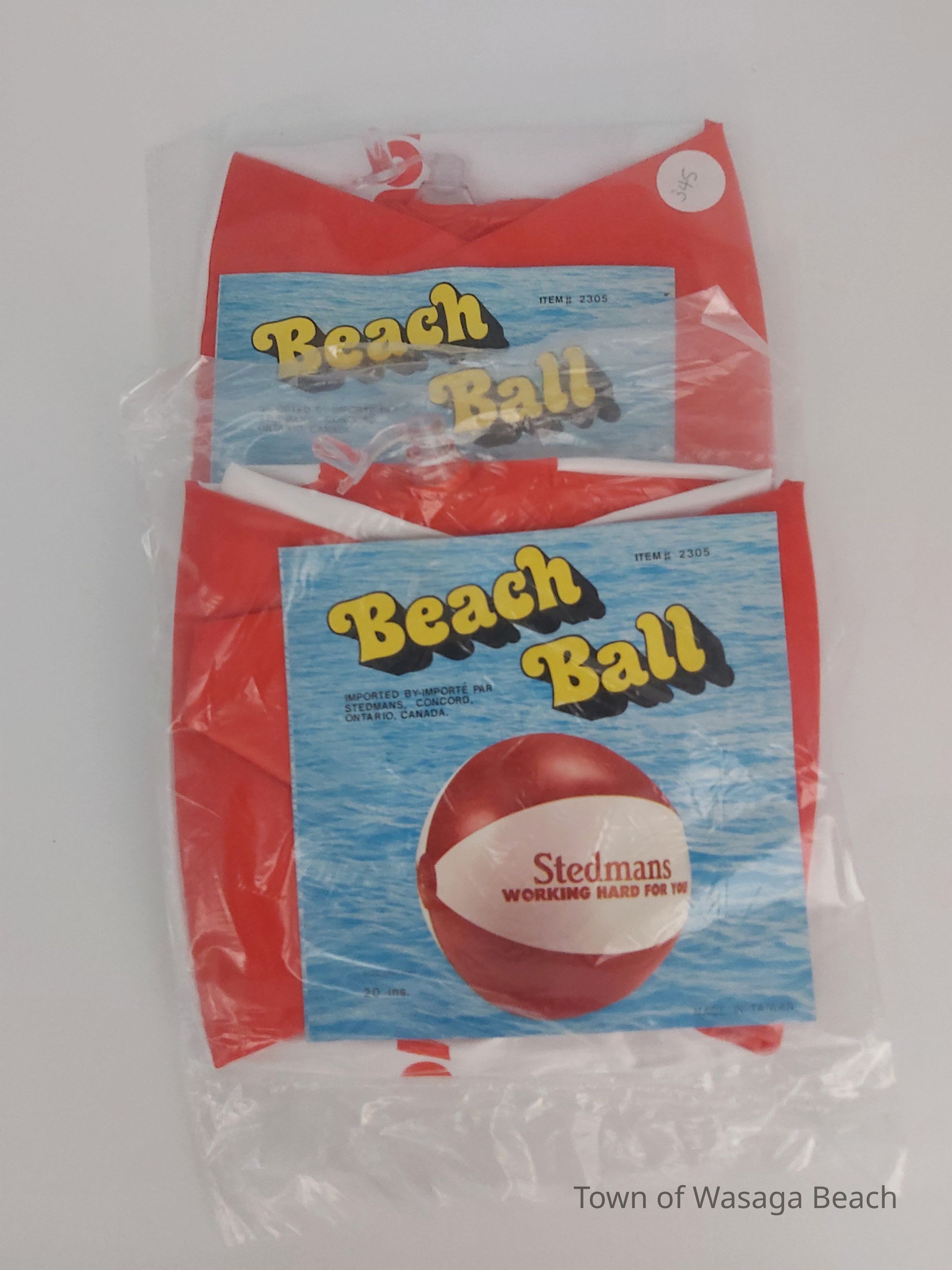 Two packages containing a Stedmans beach ballContext