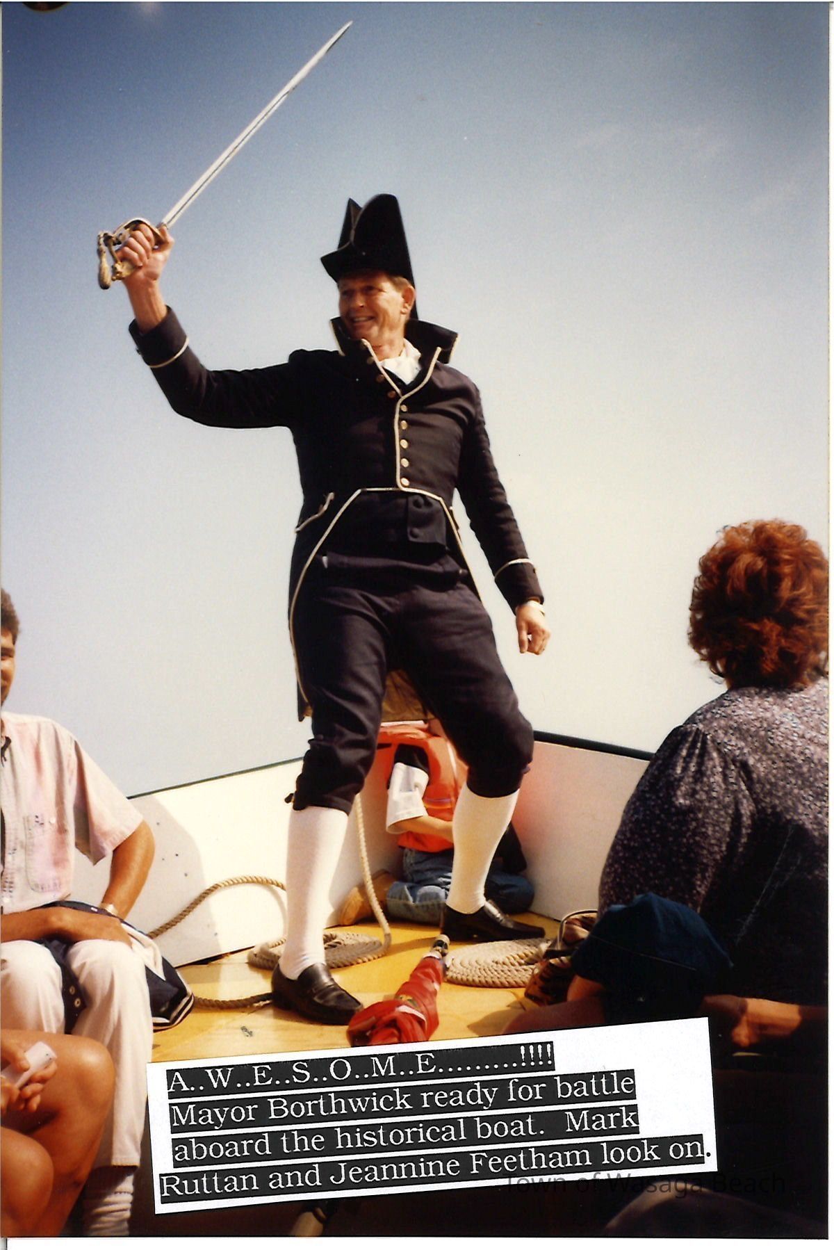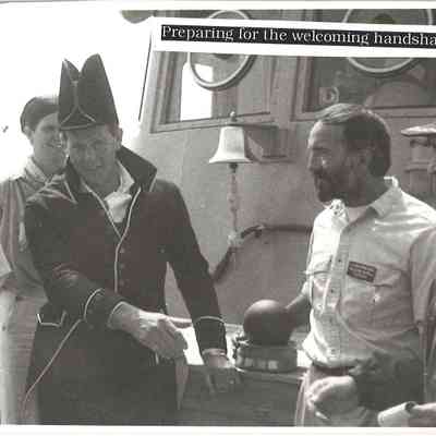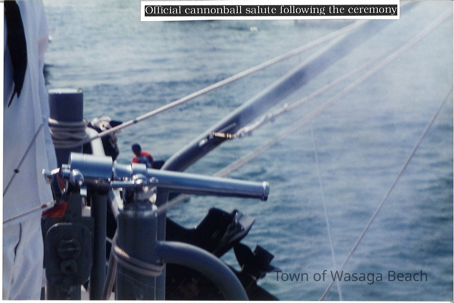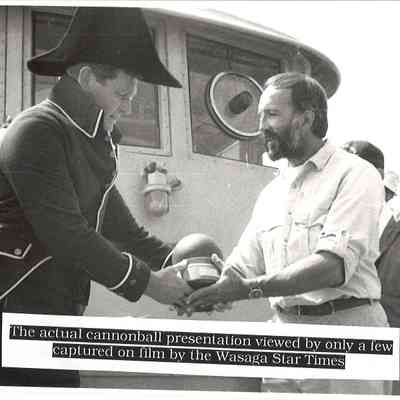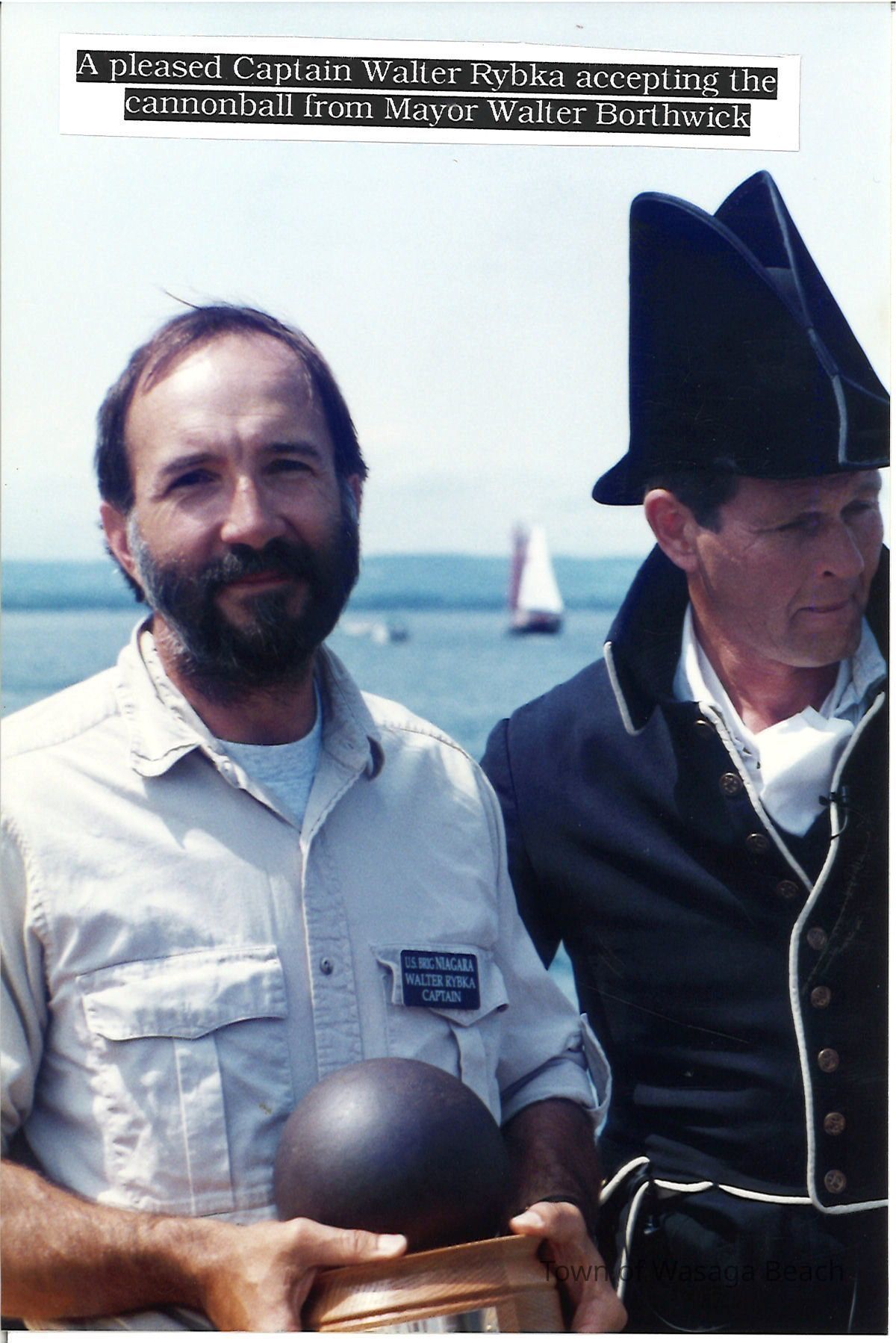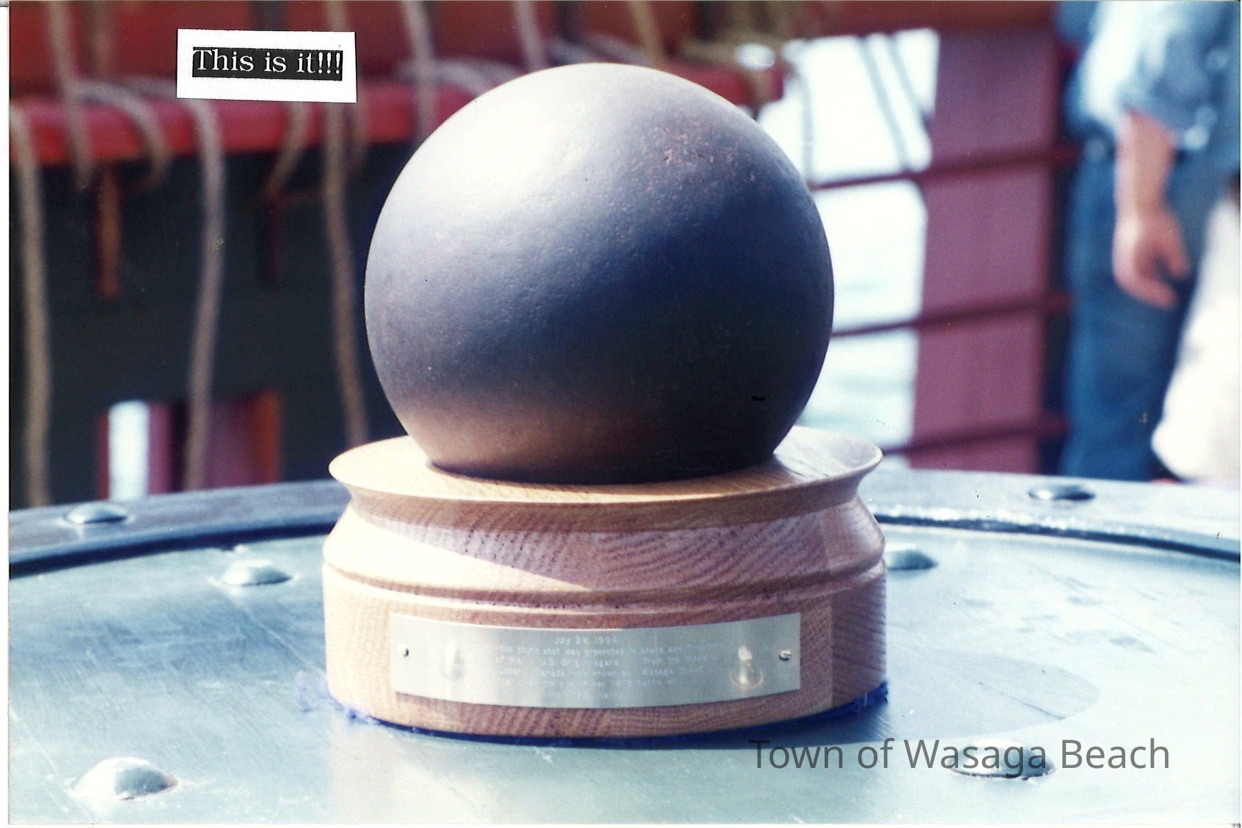 "It was one of our fabulous summer days with full sunshine. Those dressed in period costumes and woollen uniforms will remember how warm they felt when crossing the bay under the hot sun to meet the ships. We had a small vessel full of dignitaries heading out to meet them, complete with Mayor Walter Borthwick dressed in full uniform. They were on their way to meet the captain of the U.S Brig Niagara, to return a 32-pound shot or cannonball, which had been fired on the Nancy and later found in the river’s sand bottom", written by Mary Watson, Town Archivist. See link to full article below.Acquisition