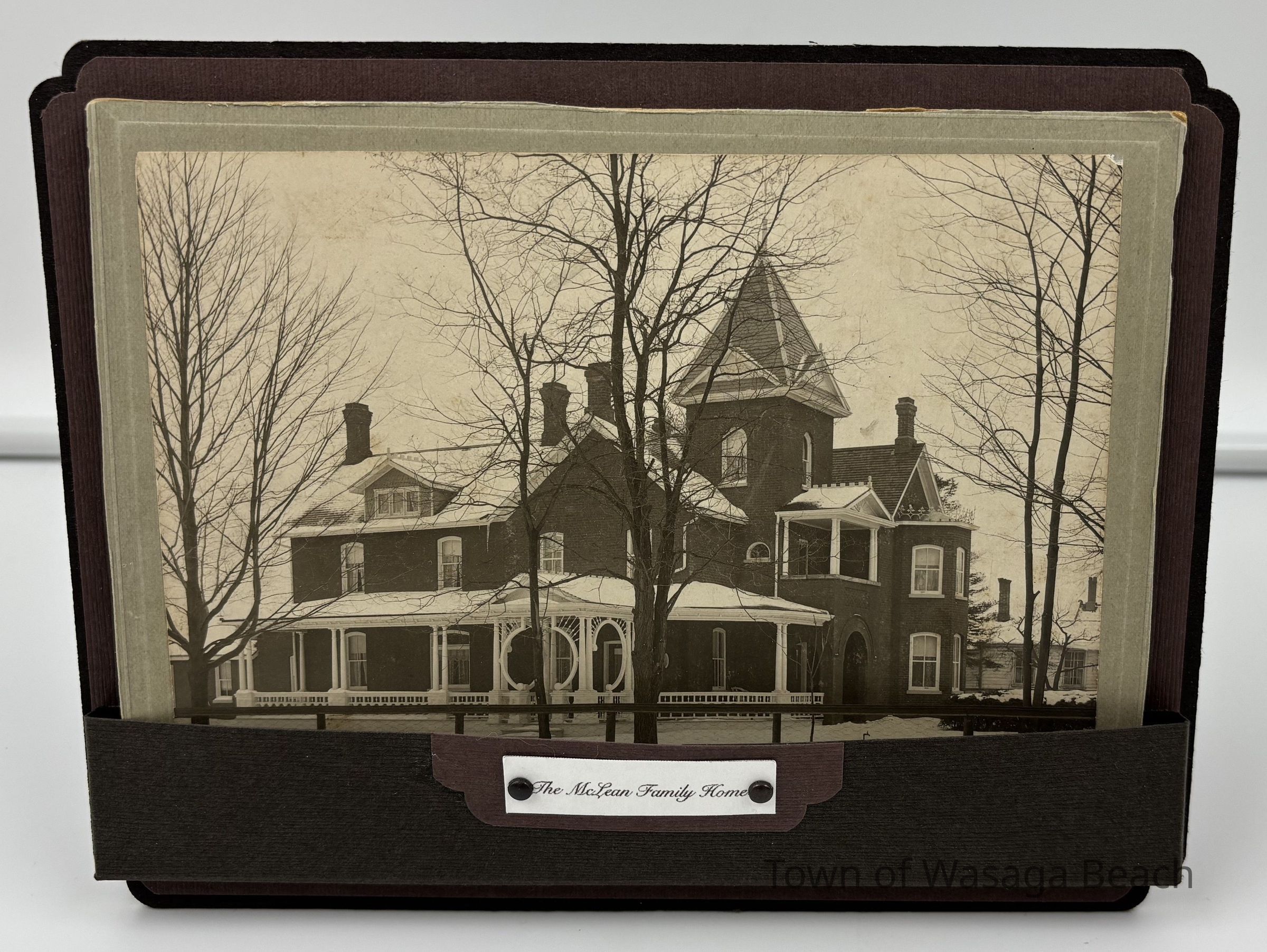 Photograph of the McLean family home in Stayner, Ont. displayed in a handmade frameContext
