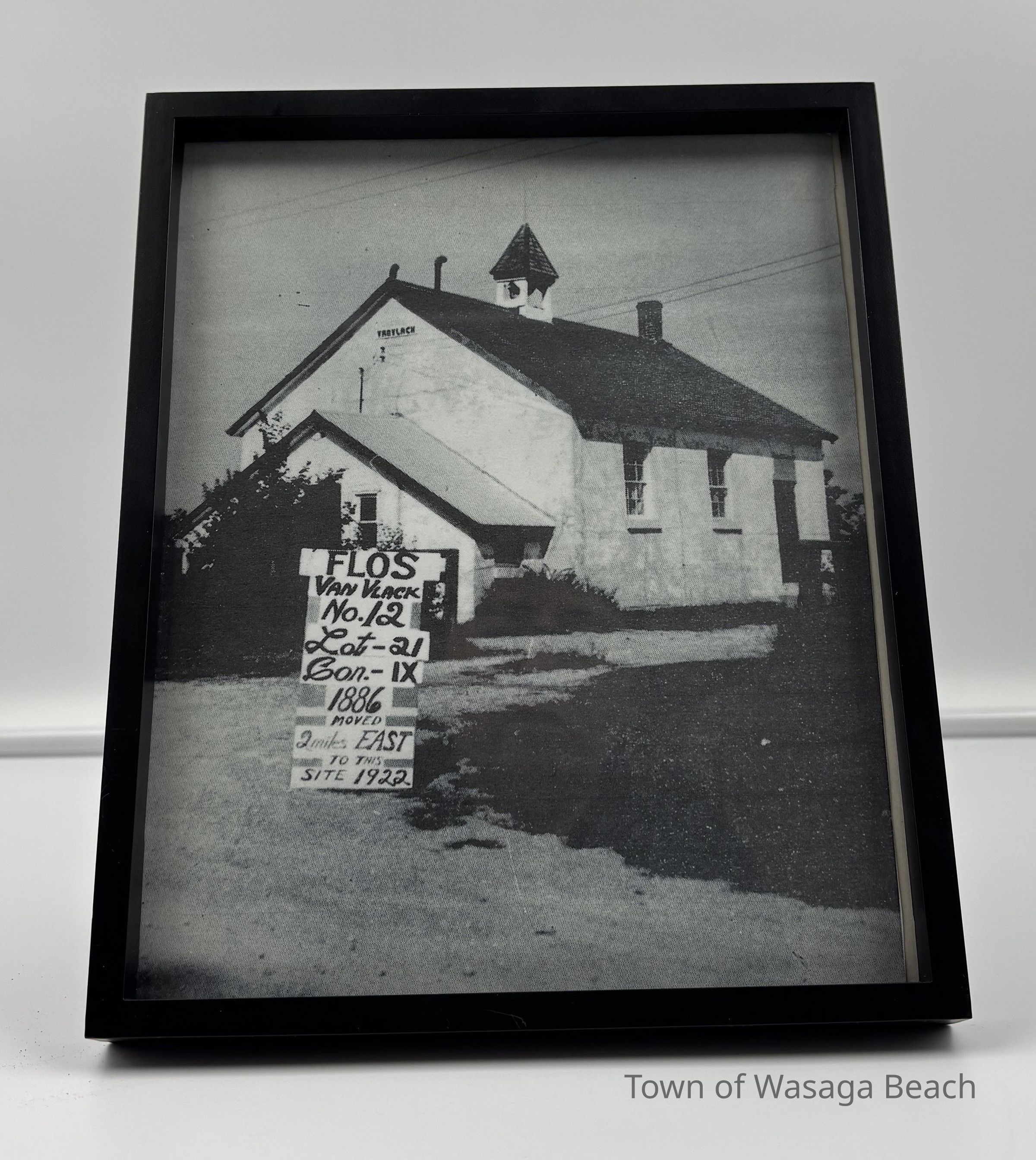 The school continued to thrive over the years until in 1922, it was determined that most of the students came from the eastern part of the school section and the controversial decision was made, by a very close vote, to move the school 2 miles east to S 1/2 Lot 21, Flos Township at the corner of Highway 92 and County Road 20. The school was loaded onto skids and hitched to a team of horses. A group of men opposed to moving the school, built a bonfire in the middle of the road in attempt to stop the move but eventually the move continued to the new location. The school was then formally known as Van Vlack Public School No. 12, Township of Flos. The school operated until June 29, 1965 when it was closed.