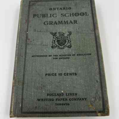 "Ontario Public School Grammar" - Authorized by the Minister of Education for Ontario, Holland Linen Writing Paper Company Toronto. Noted inside the book: "Entered, according to Act of the Parliament of Canada, in the year 1910, in the office of the Minister of Agriculture by the Minister of Education for Ontario"