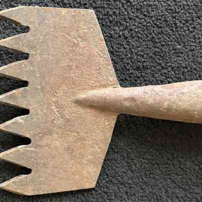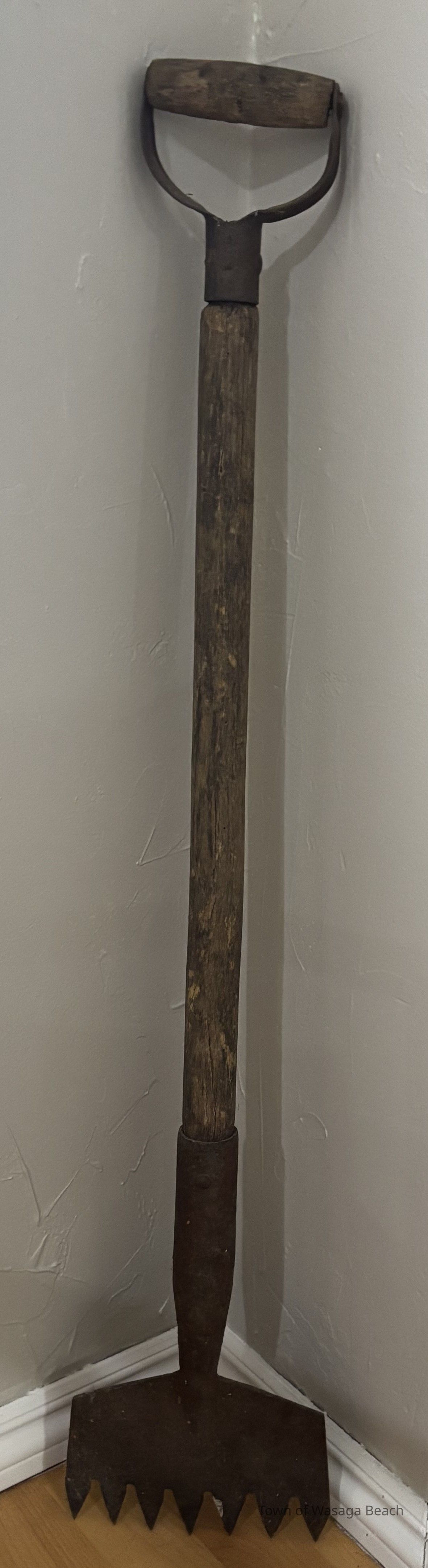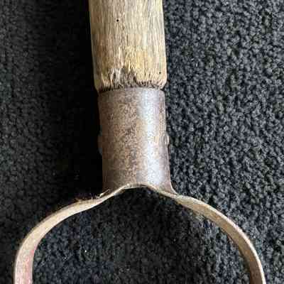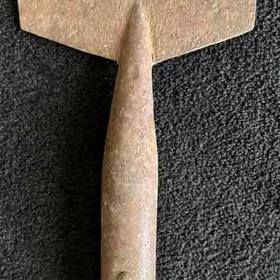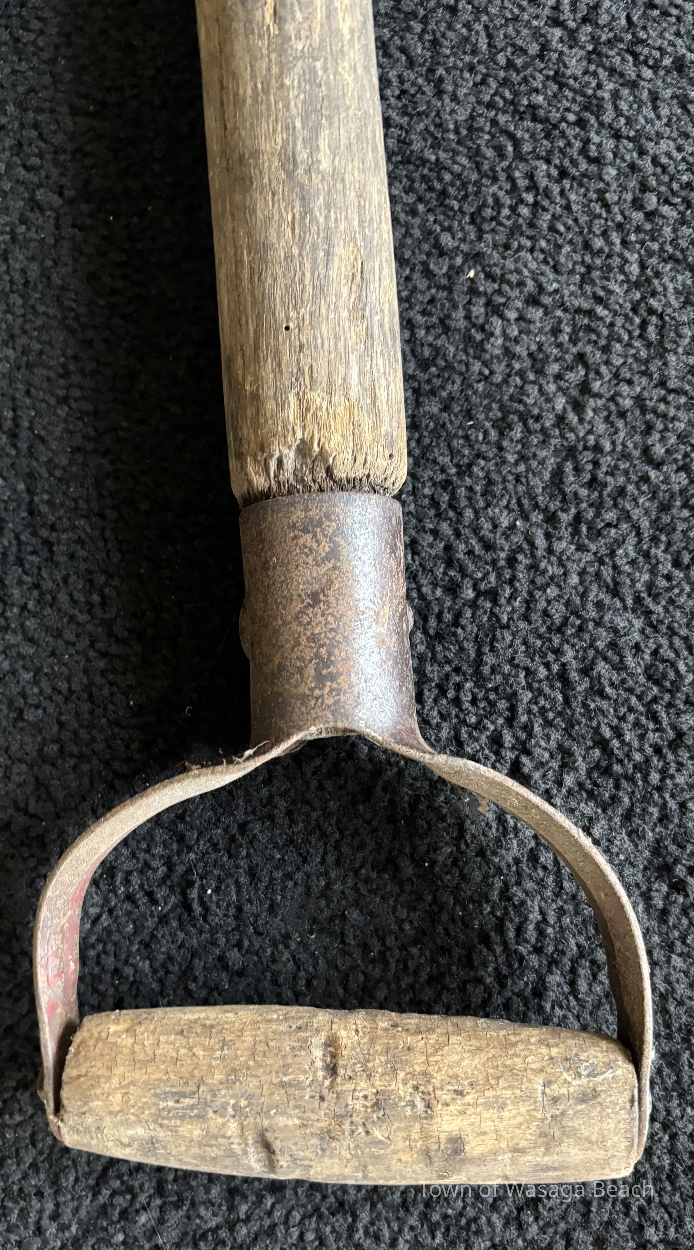 The spade, made from wood and metal, was purchased and was used to break ice blocks into smaller pieces to place around fish packed into wooden boxes for shipping.