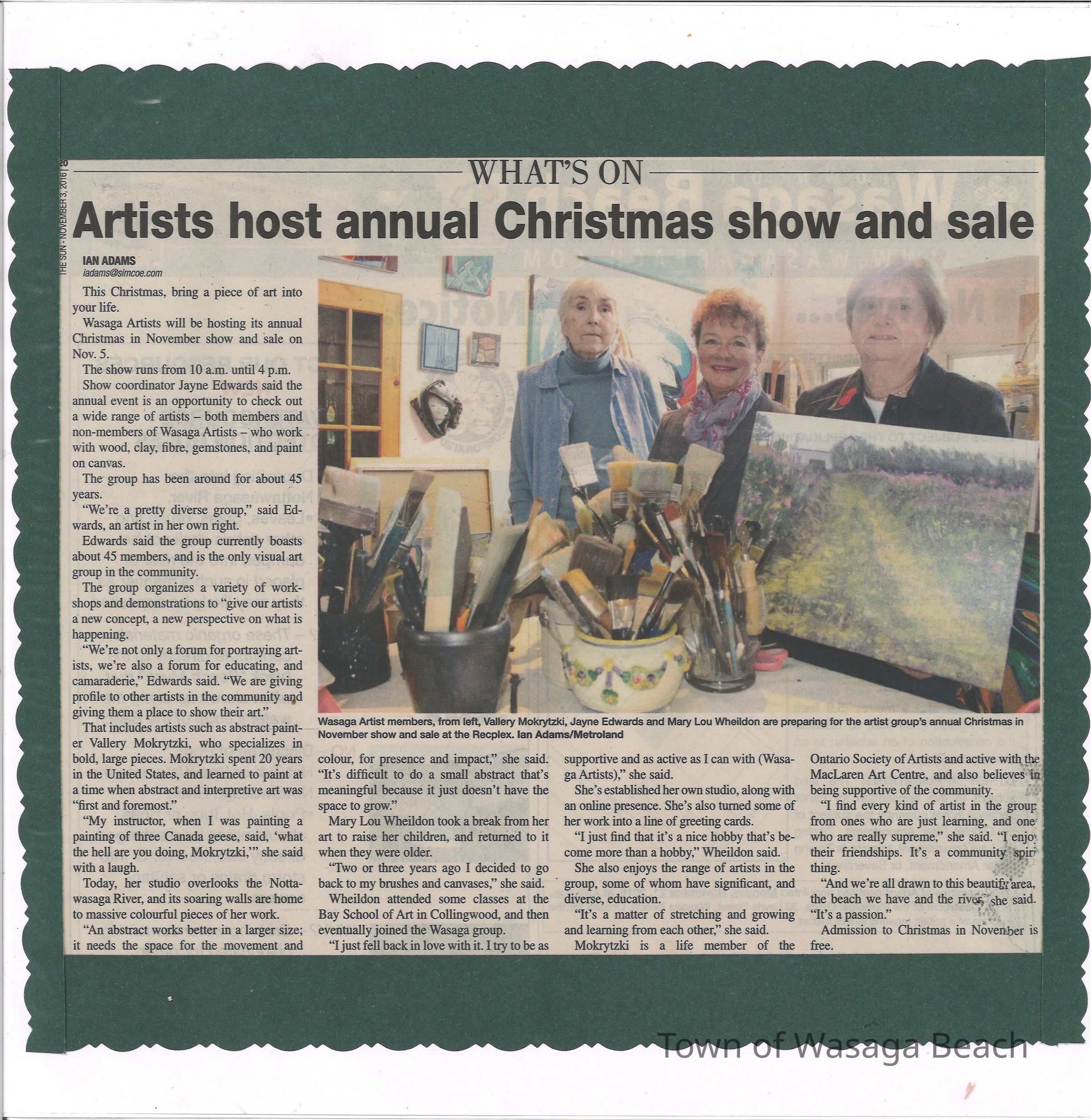 "The Wasaga Artists are a group of likeminded, creatives who wish to connect with other local art groups, community service clubs, and a few outreach programs, in order to share our love for the arts. Our group welcomes artists of all ages, skill level, and and backgrounds. Whether you are a quilter, painter, sculptor, or photographer, there is a place for every artist who wishes to share their creativity in a safe space, full of support and encouragement.