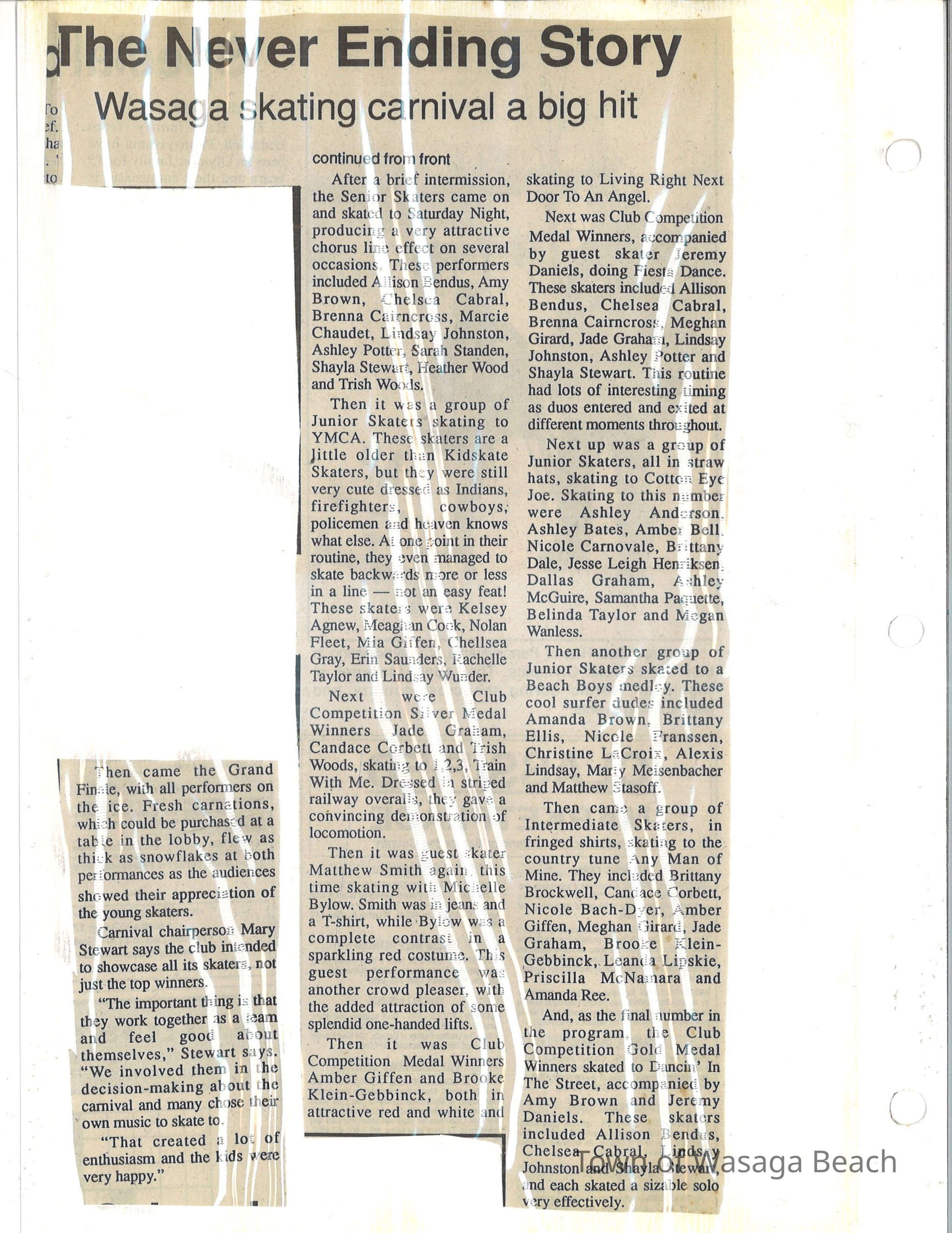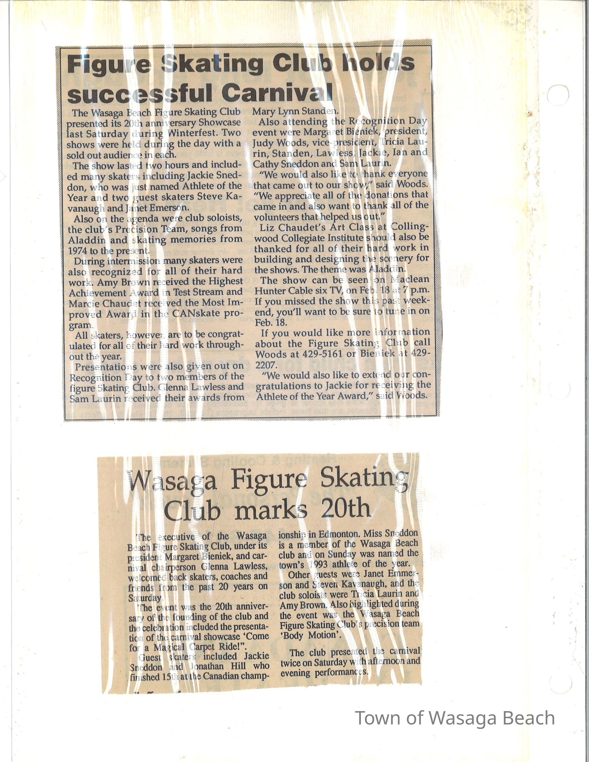 Wasaga Beach Figure Skating Club - Skating Carnival Programs & Articles 1991-1996Entry/Object ID