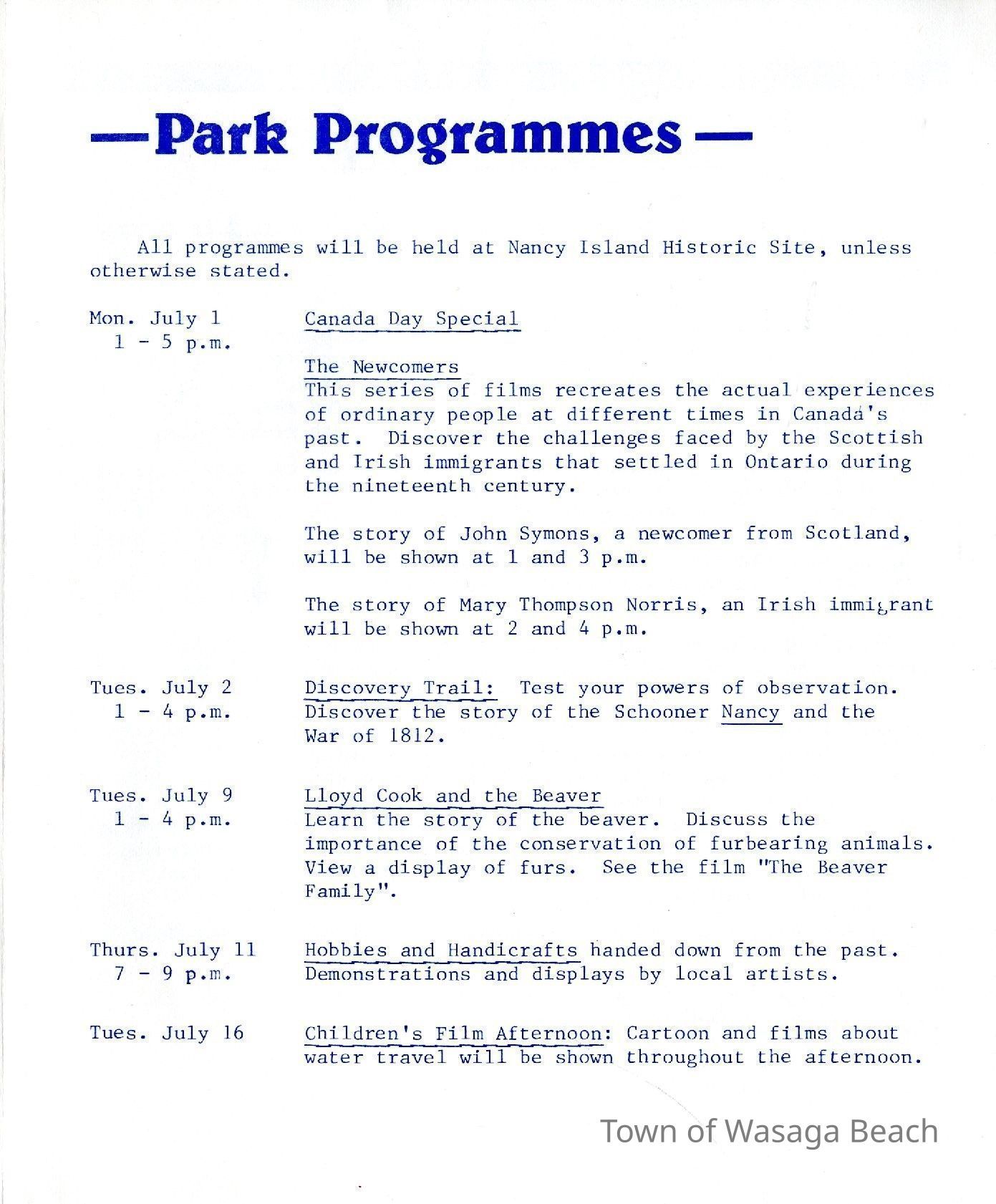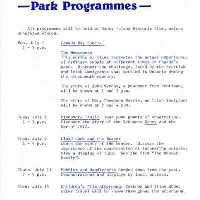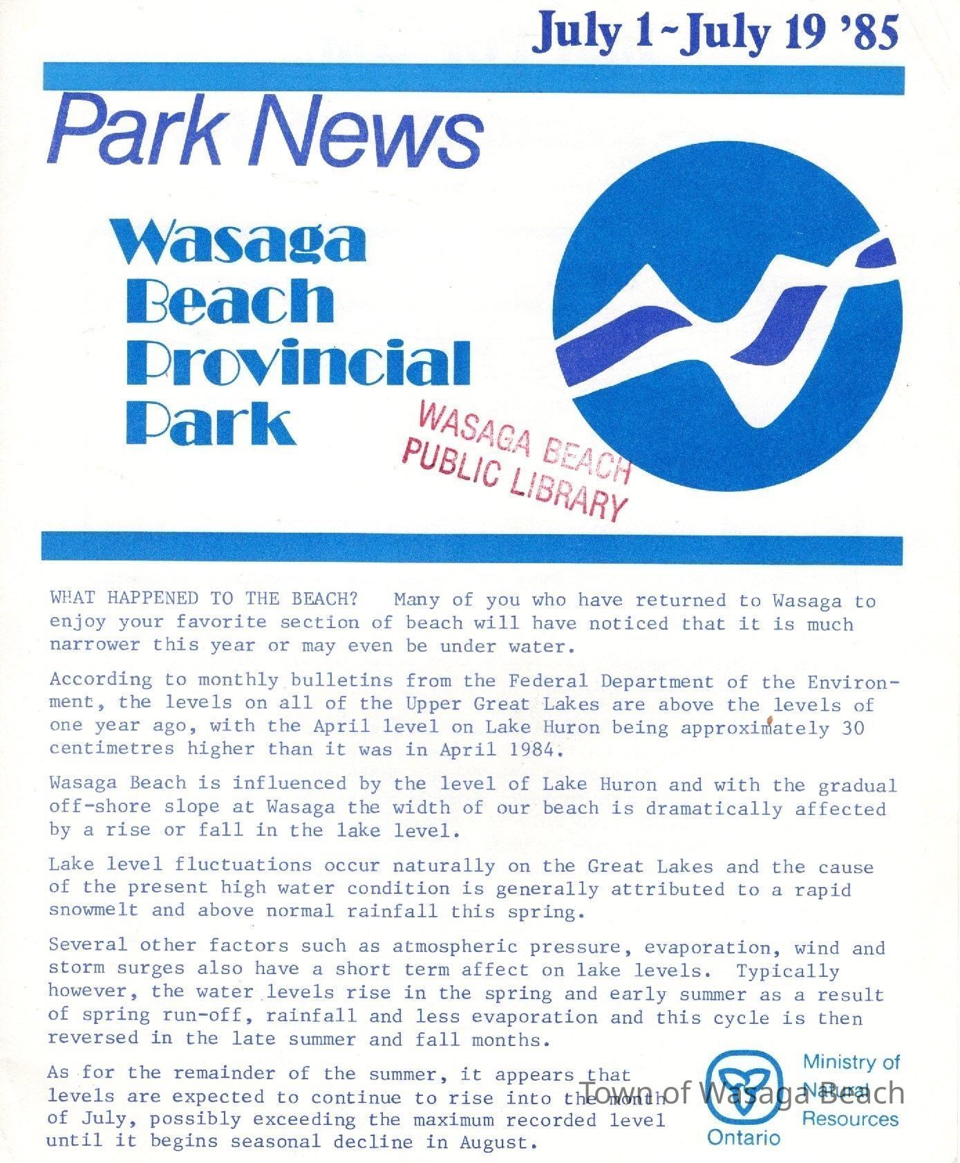 Wasaga Beach Provincial Park newsletter, July 1 - July 19, 1985Context