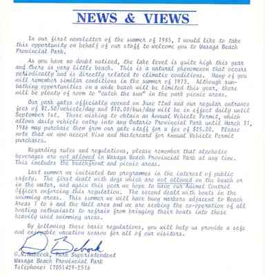 Wasaga Beach Provincial Park Newsletter, 1985Entry/Object ID