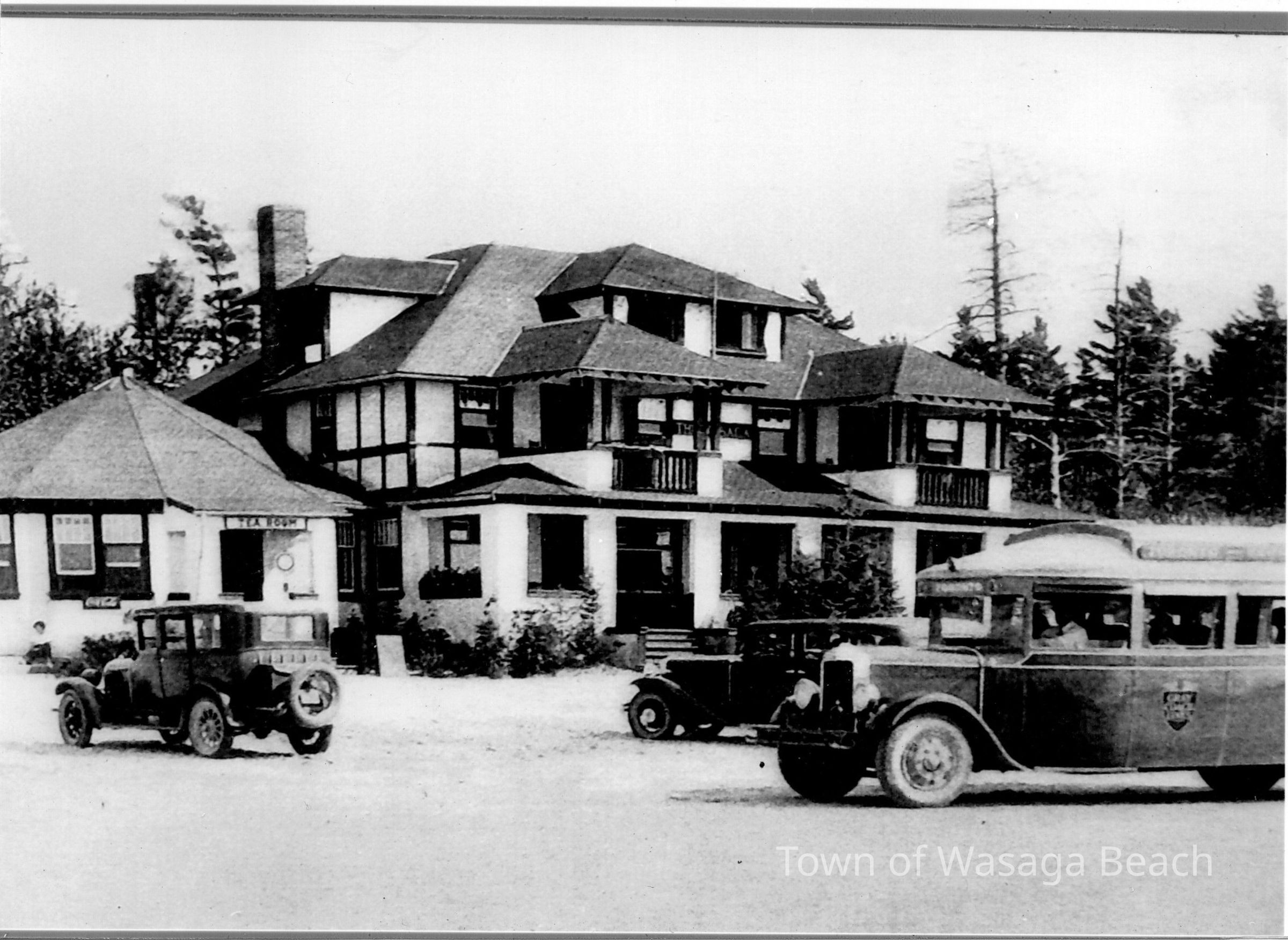 The photograph shows Wasaga Inn with a "Tea Room" beside it. There are vintage automobiles also shown in the photograph.Acquisition