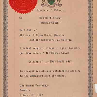 Wasaga Beach Chamber of Commerce - Myrtle Lynn - 1986