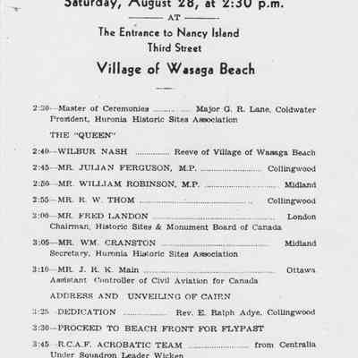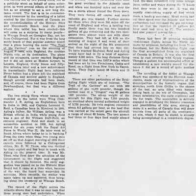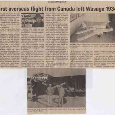 "First overseas flight from Canada left Wasaga 1934", by Thelma Morrison, Archivist