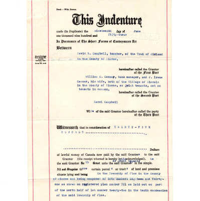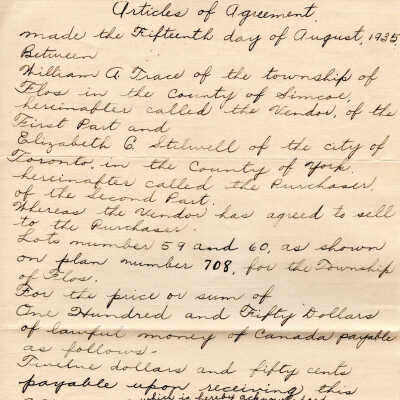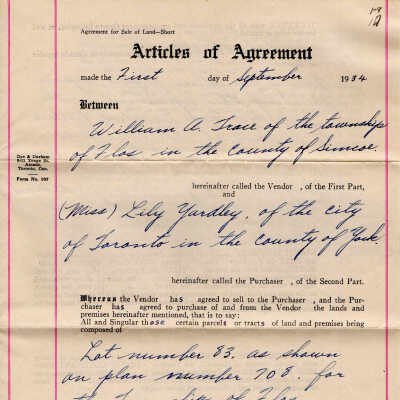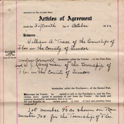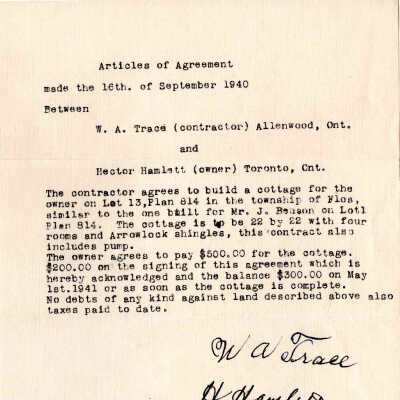 Agreement to Build a Cottage, Lot 13, Plan 814