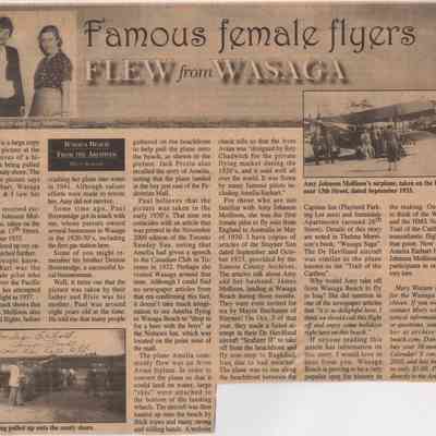 "Famous Female Flyers Flew from Wasaga" by Mary Watson, Archivist
