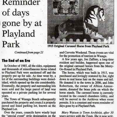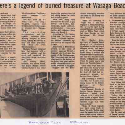 "There's a legend of buried treasure at Wasaga Beach" by Jim Armstrong, Nottawasaga Times, July 8, 1971