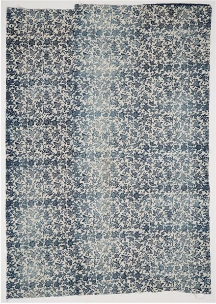Bedcover in three panels, made of cotton with indigo batik decoration. Shanghai area, China. Mid 20th century. Acquired in Beijing around 2000.Acquisition