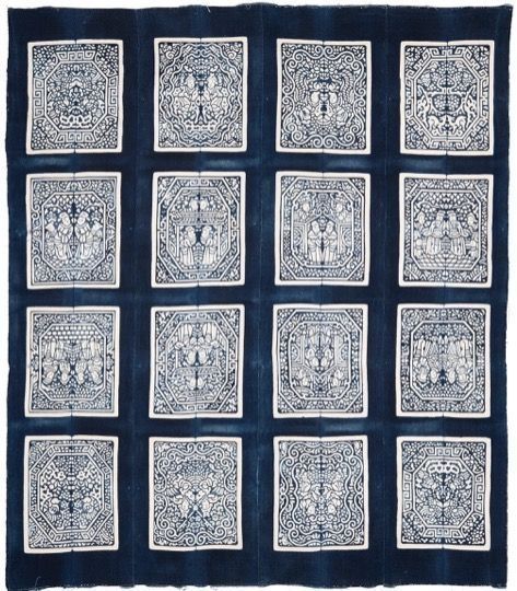 This cotton bedcover is dyed with indigo using a clamp resist. It was made in Zhejiang province, China.Acquisition