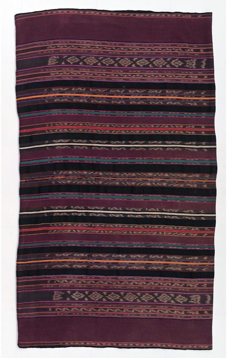 Tenapi Belang means a tube skirt with stripes. It is worn by members of the Suku Uma Tukang (Middle Brother) patrilineage of the Alurung ethnic group. The garment is made of two panels of warp ikat decorated cloth, traditionally dyed with morinda, yielding a brownish-red color. The main warp ikat bands can be found near the top and bottom of the skirt. The distinguishing feature of Tenapi Belang is its white and orange stripes in the middle section.Acquisition