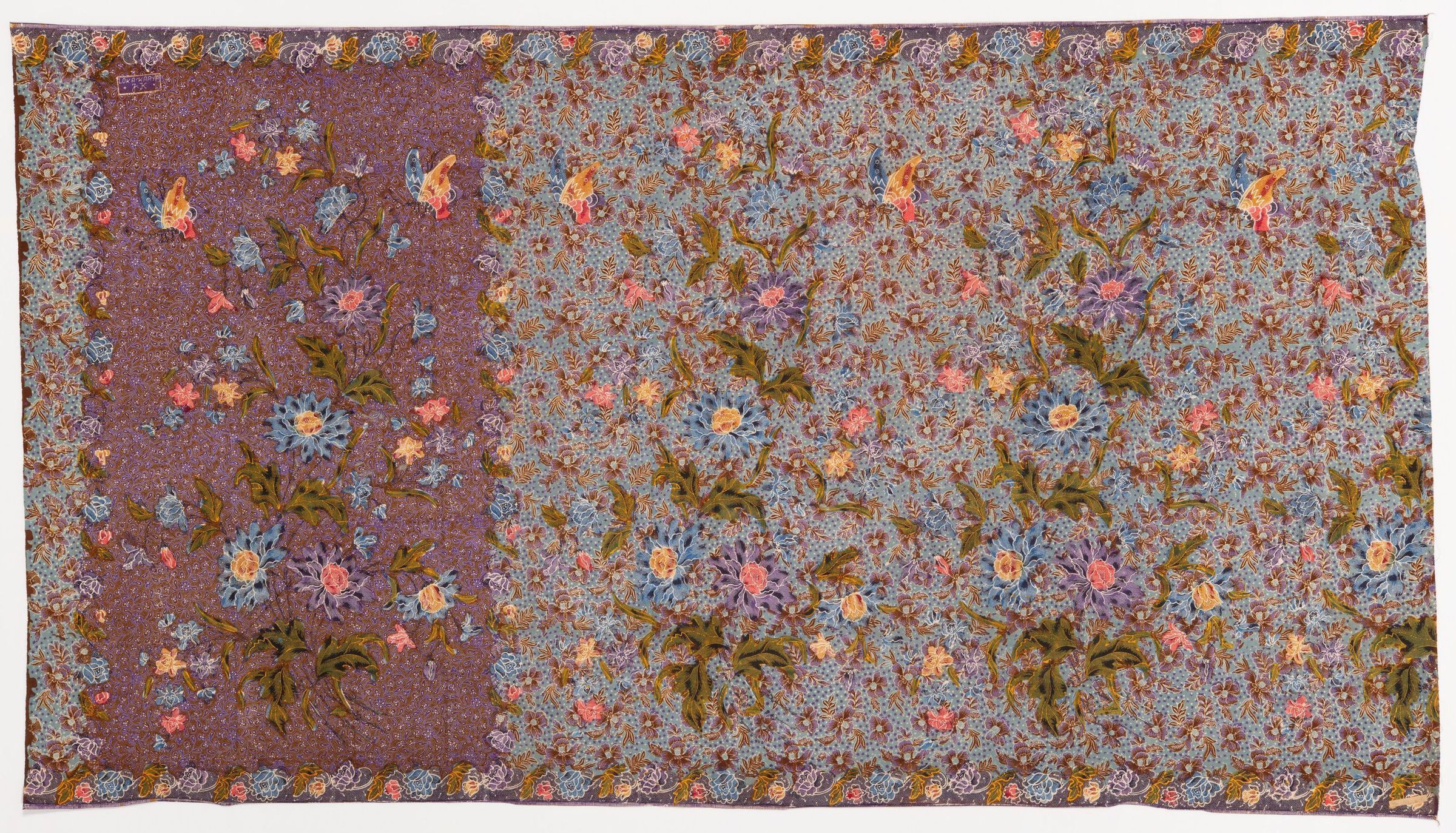 This batik cloth depicts buketan motifs. It has the producer stamp: Loka.Karya, *J.K* To achieve the various color hues, the wax-resist and dyeing (batik) works has been combined with direct applications of colors (colet).Acquisition