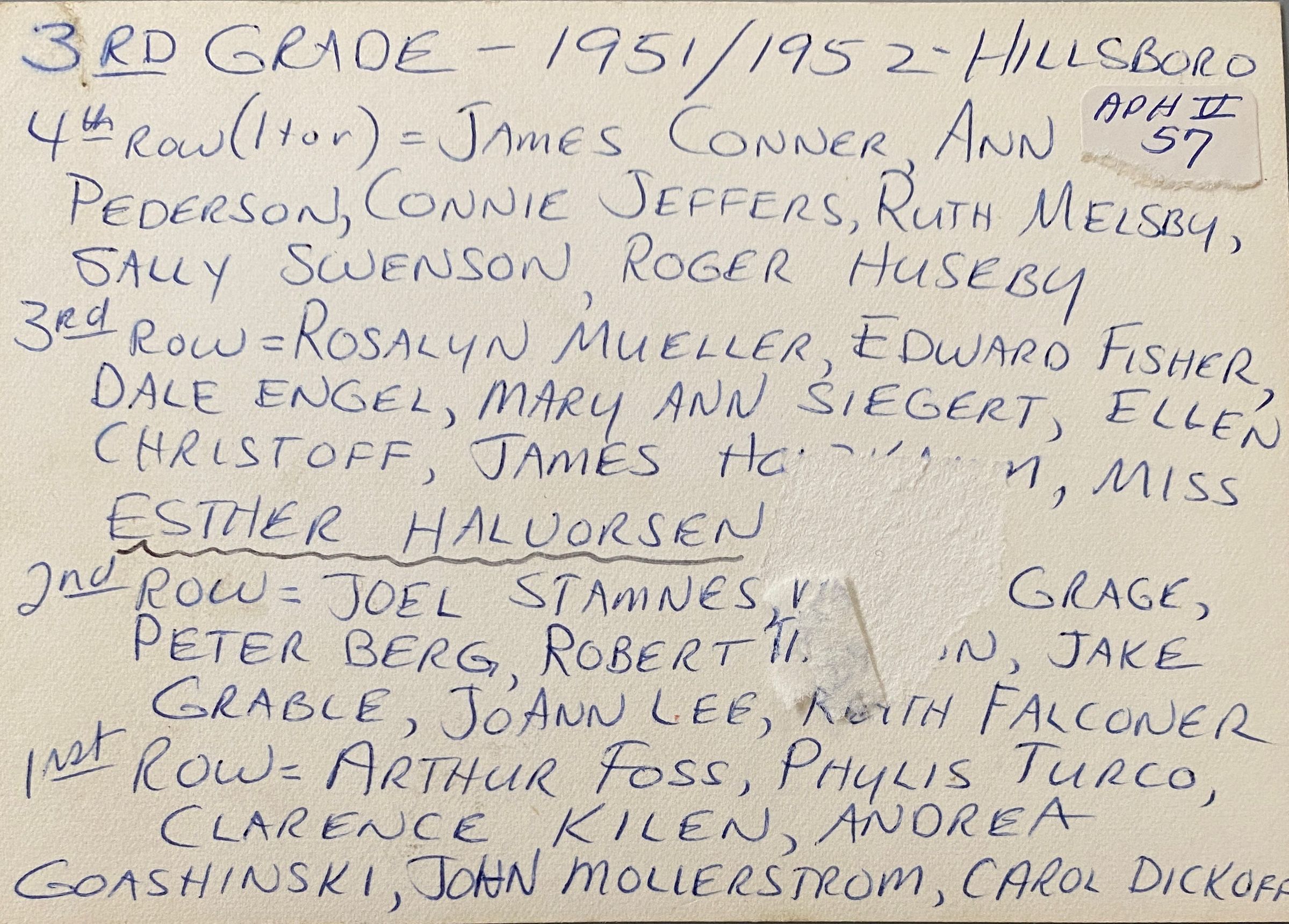 James Conner, Ann Pederson, Connie Jeffers, Ruth Melsby, Sally Swenson, Roger Huseby, Rosalyn Mueller, Edward Fisher, Dale Engel, Mary Ann Siegert, Ellen Christoff, Esther Halvorsen, Joel Stamnes, Peter Berg, Jake Grable, JoAnn Lee, Keith Falconer, Arthur Foss, Phylis Turco, Clarence Kilen, Andrea Goashinski, John Mollerstrom, Carol Dickhoff