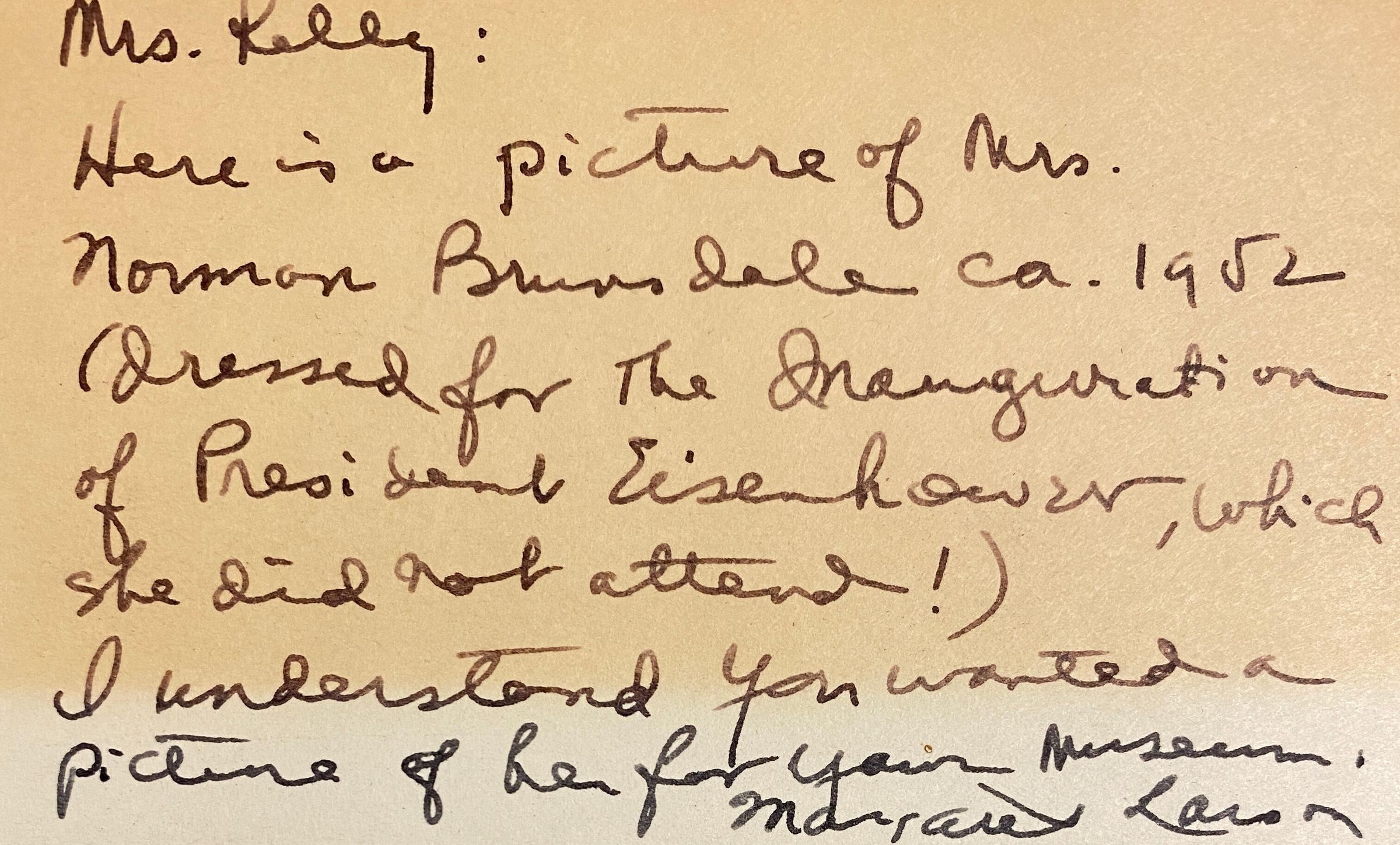 This was taken for the Inauguration of President Eisenhower but she was unable to attend.Subject Person or Organization