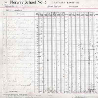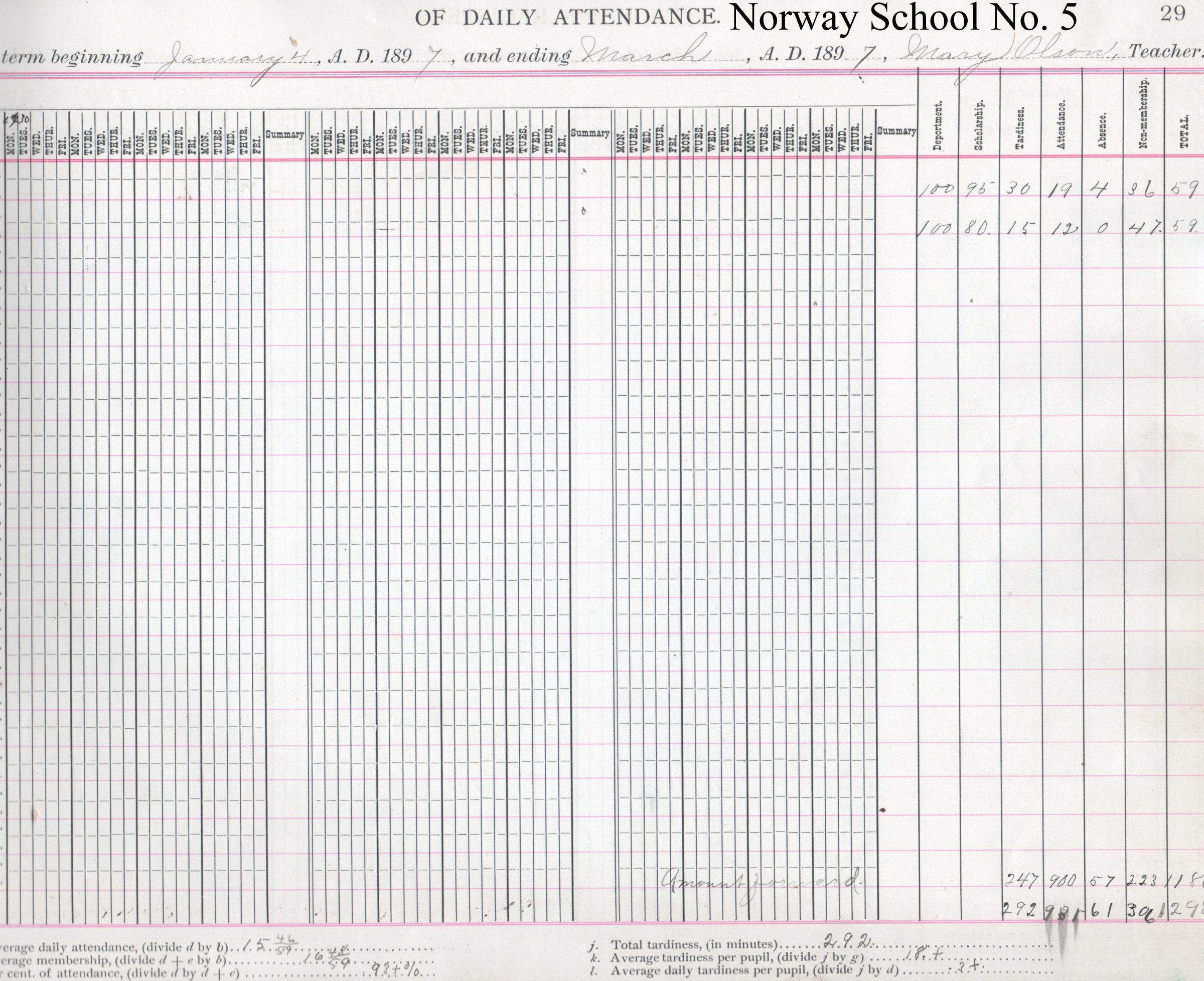Norway School No. 5, 1897 Teacher's Register, Spring TermEntry/Object ID