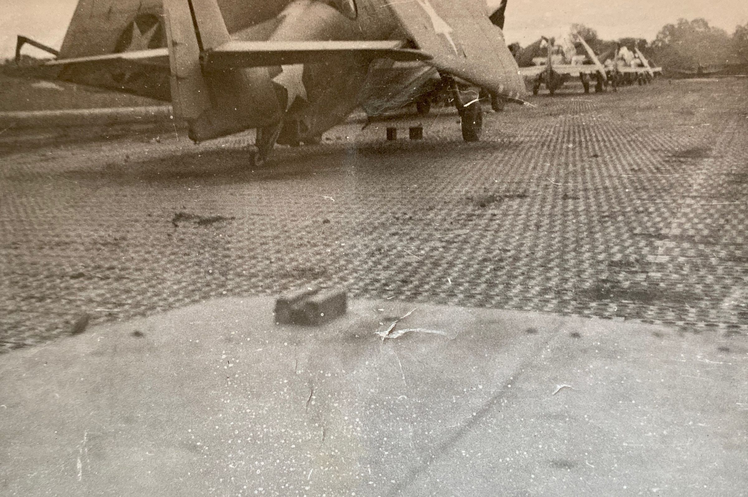 Fighter planes parked on Henderson Field on Guadalcanal, Soloman Islands, South Pacific, during WWII.Context