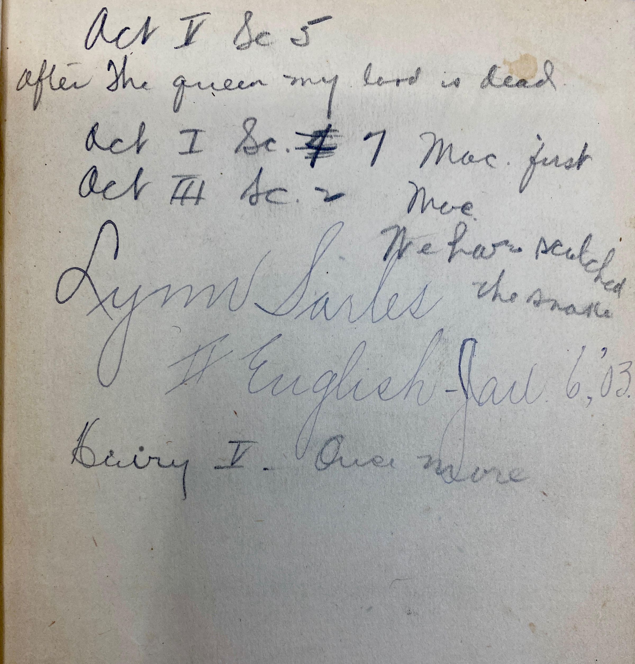 Once owned and used by Lynn Sarles. Inscription: "Lynn Sarles II English Jan. 6, '03".Cataloged By