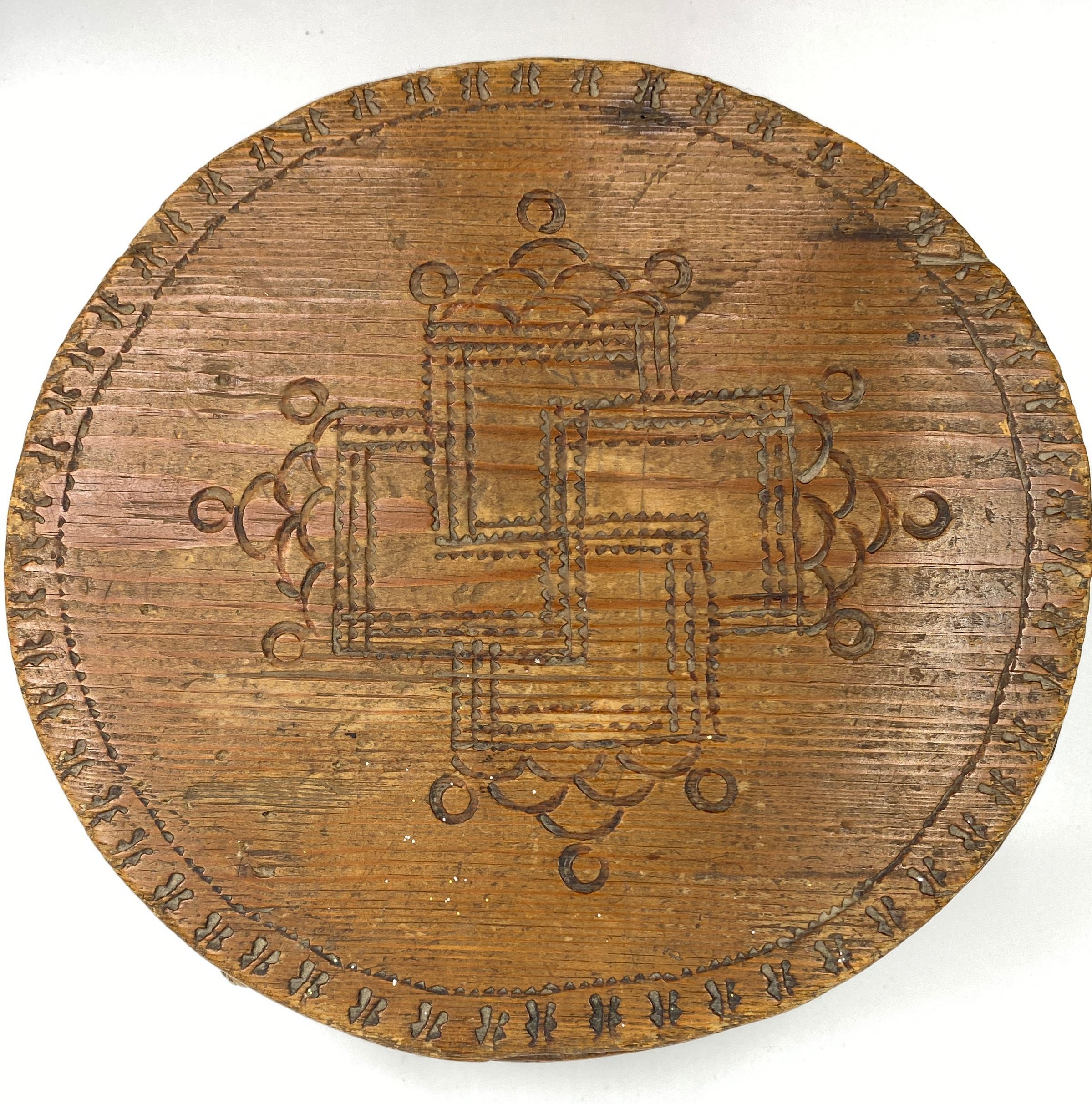 This Norwegian Bent Wood sewing box was used by Mari Swenson (Mrs. Knud Swenson) and came with her to America in 1861.