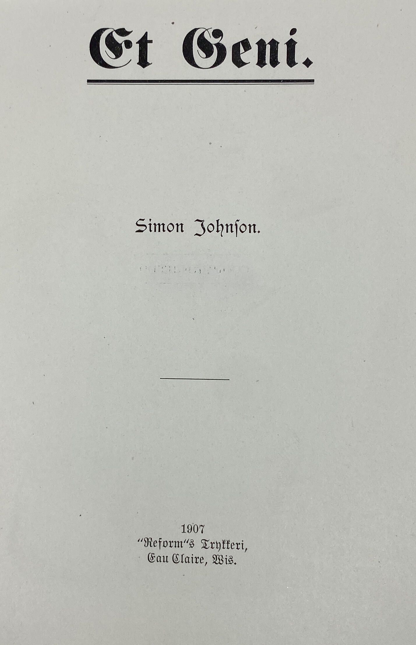 A Genius (Norwegian) by Simon Johnson, published in 1907 in Eau Claire, WisconsinCataloged By