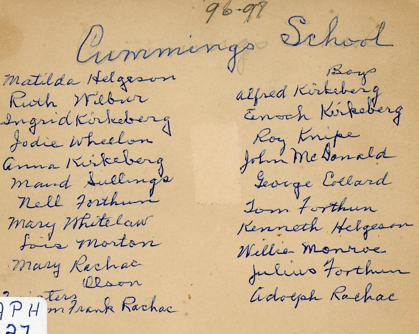 Cummings School 1896-97Subject Person or Organization
