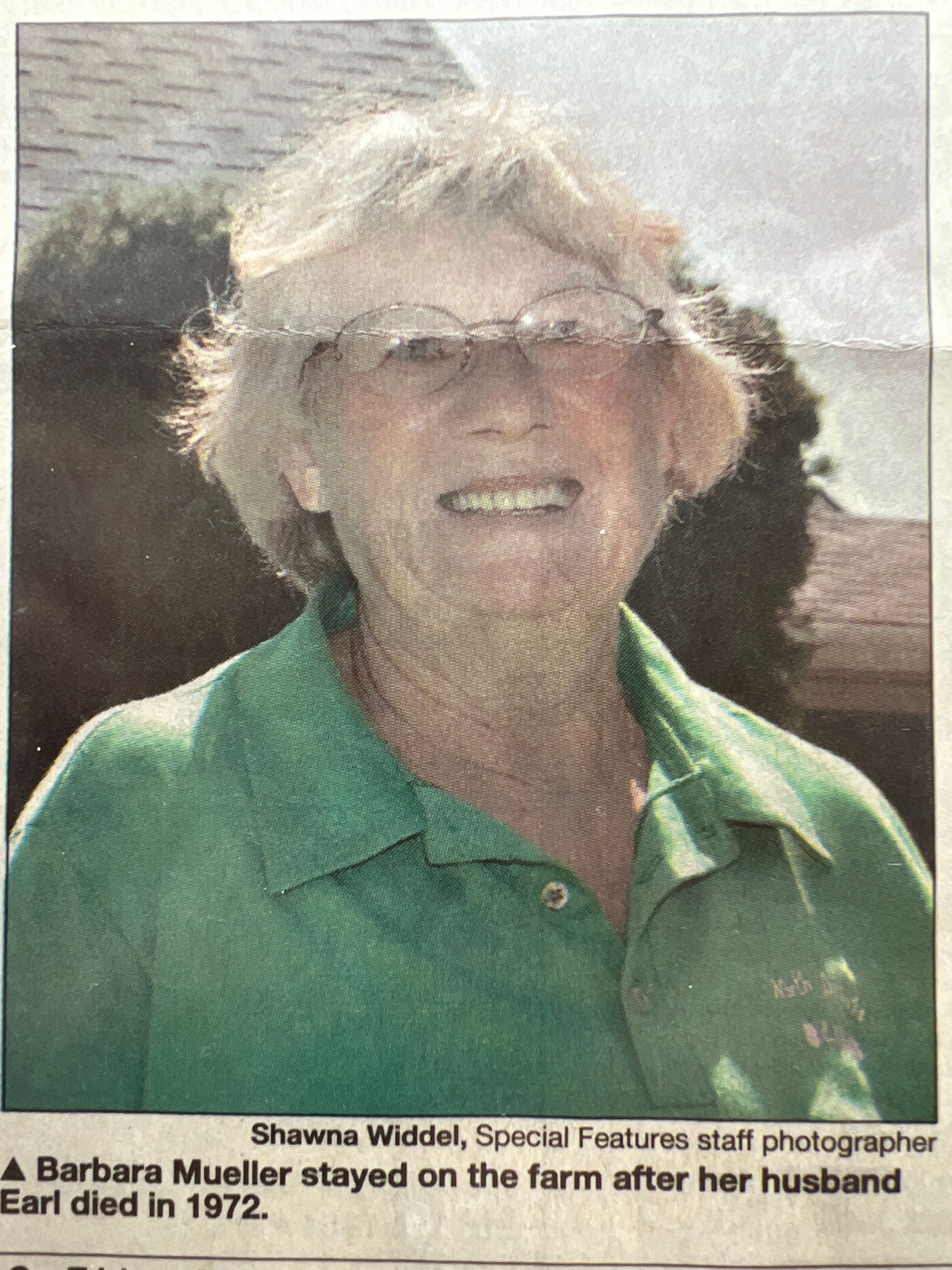 This file has a newspaper article (Grand Forks Herald, special feature, 14 August 2007) about Barbara Mueller running a former government farm by Cummings, Traill County, North Dakota, after husband Earl Mueller died in 1972.Cataloged By