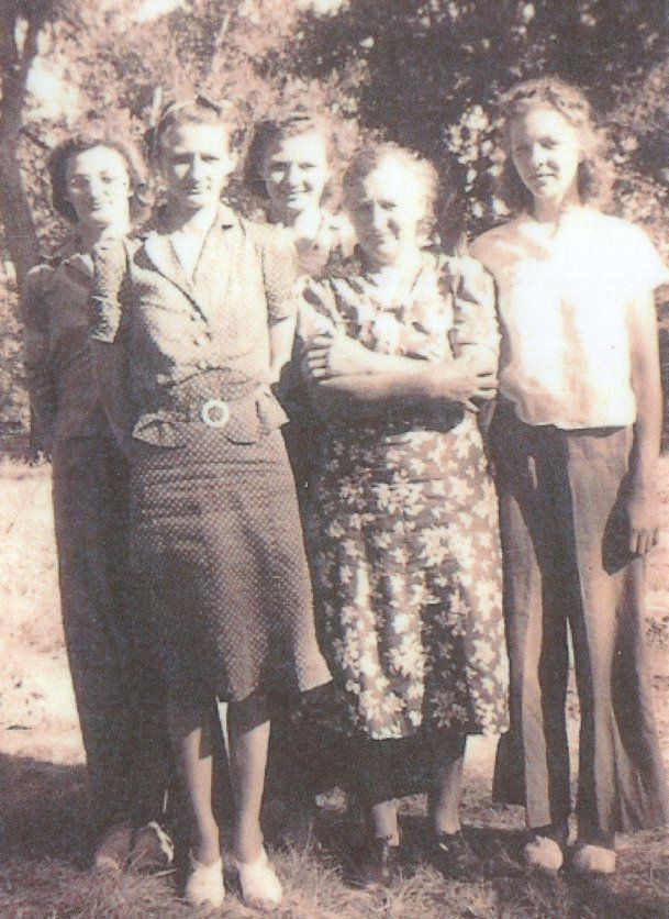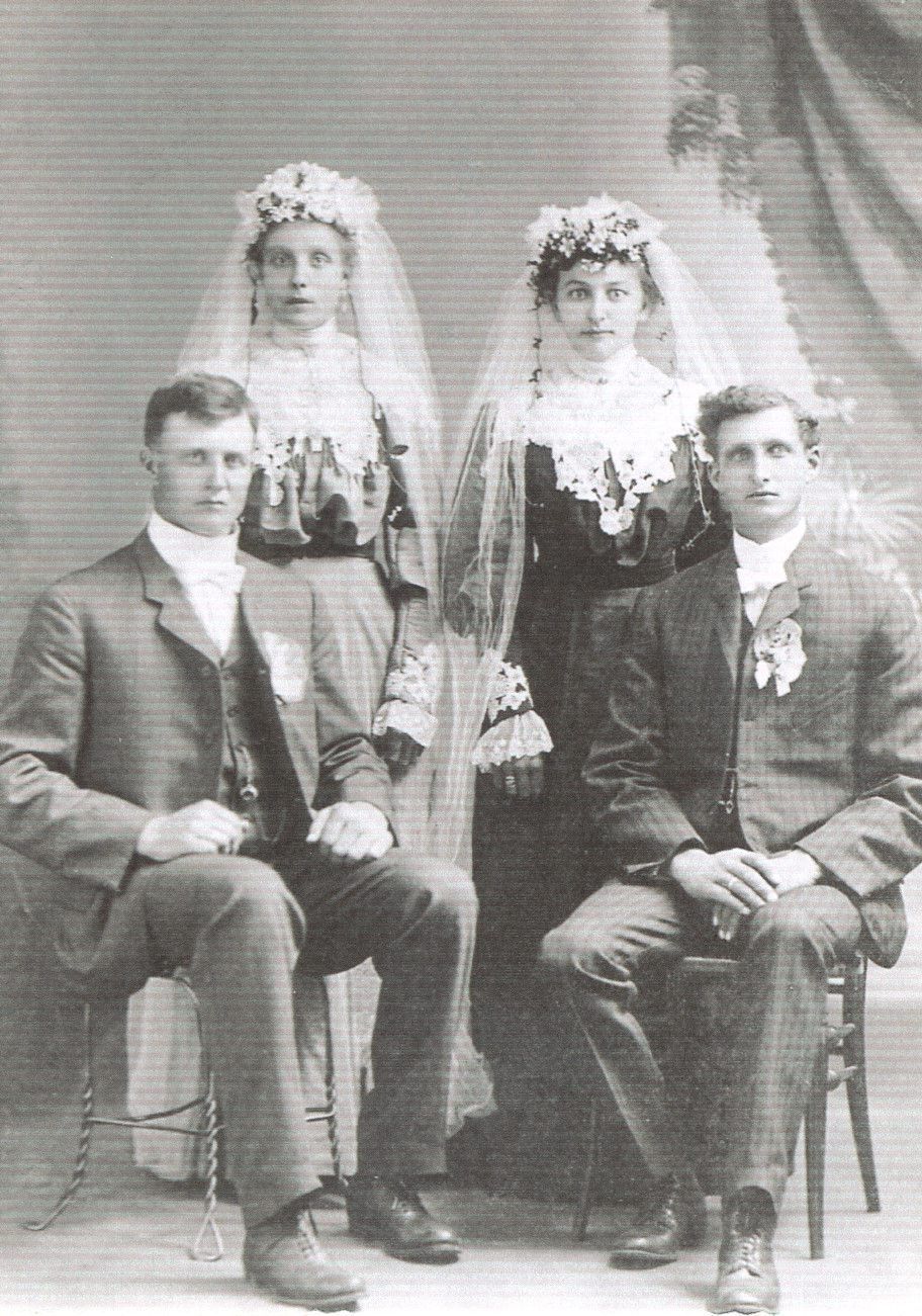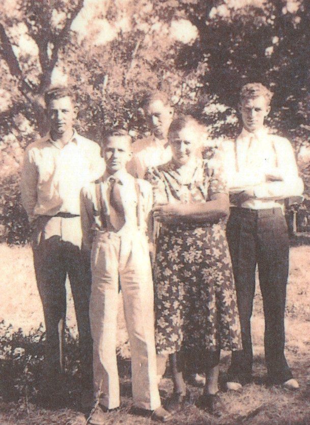 Henry Koering passed away on 30 July 1938 in Hillsboro, ND. Minnie lived about another 20 years, passing away on 4 November 1957 in Mayville, ND. Minnie is shown in a photo with her four sons (l-r): Walt, Robert, Ervin and Herman, and with four of her daughters (l-r): Eloise, Velma, Bernice and Irene (Mildren no in picture).