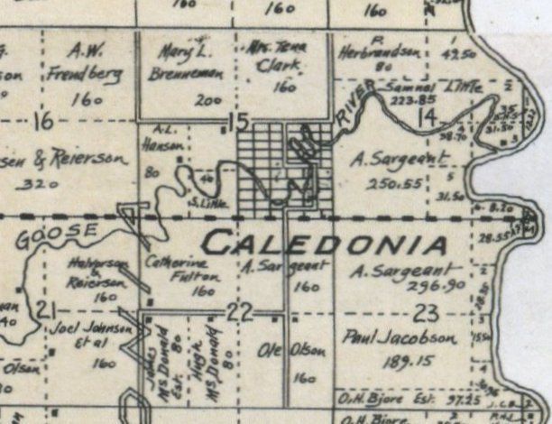 Caledonia Township School No. 1 was located in the Village of Caledonia in the SE Qtr. of Sect. 15 (see 1900 map, below).Acquisition