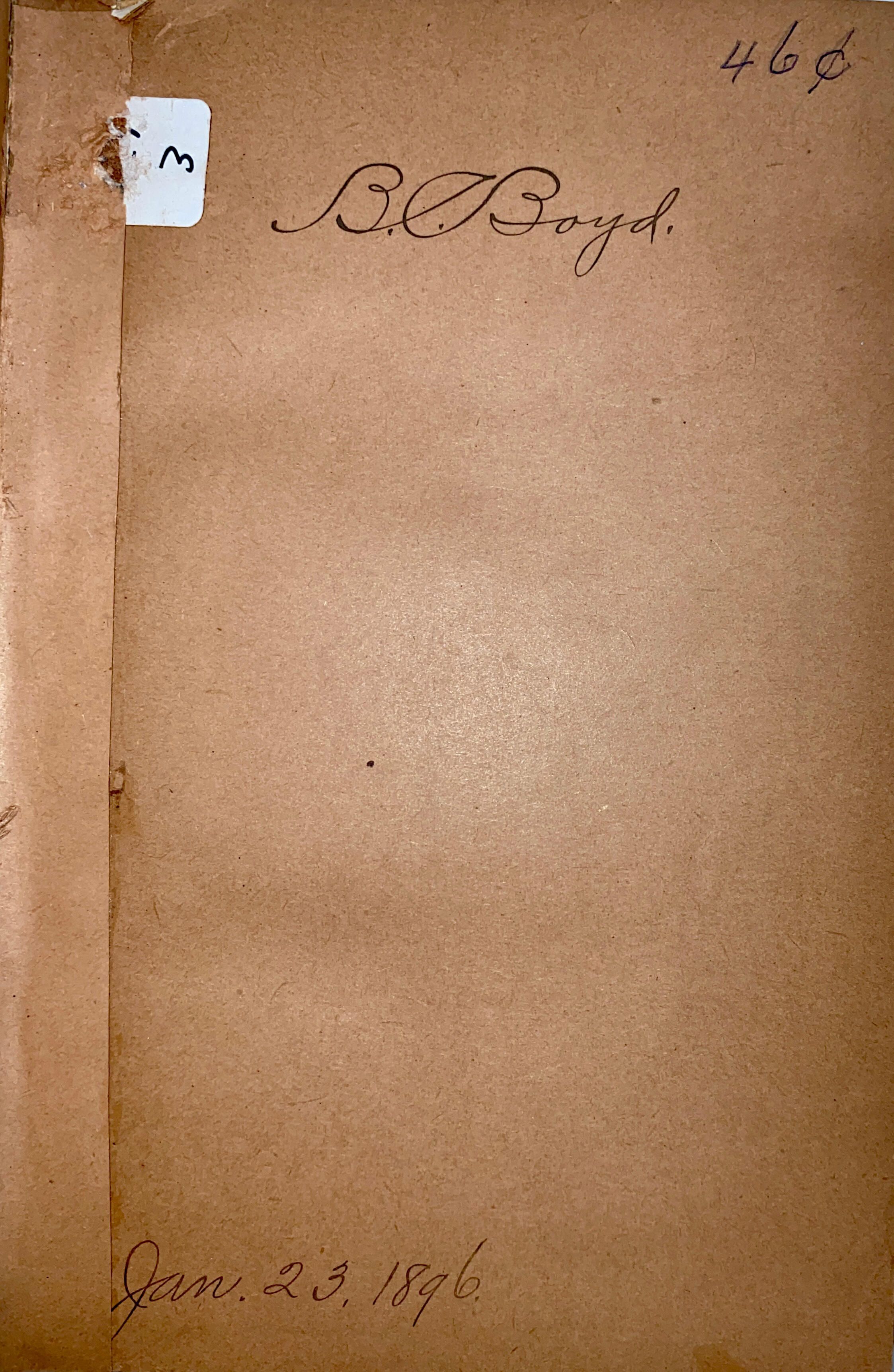 Ten Nights in a Barroom by T. S. Arthur once used and owned by Barney Boyd, with an inscription date of 23 January 1896.Cataloged By