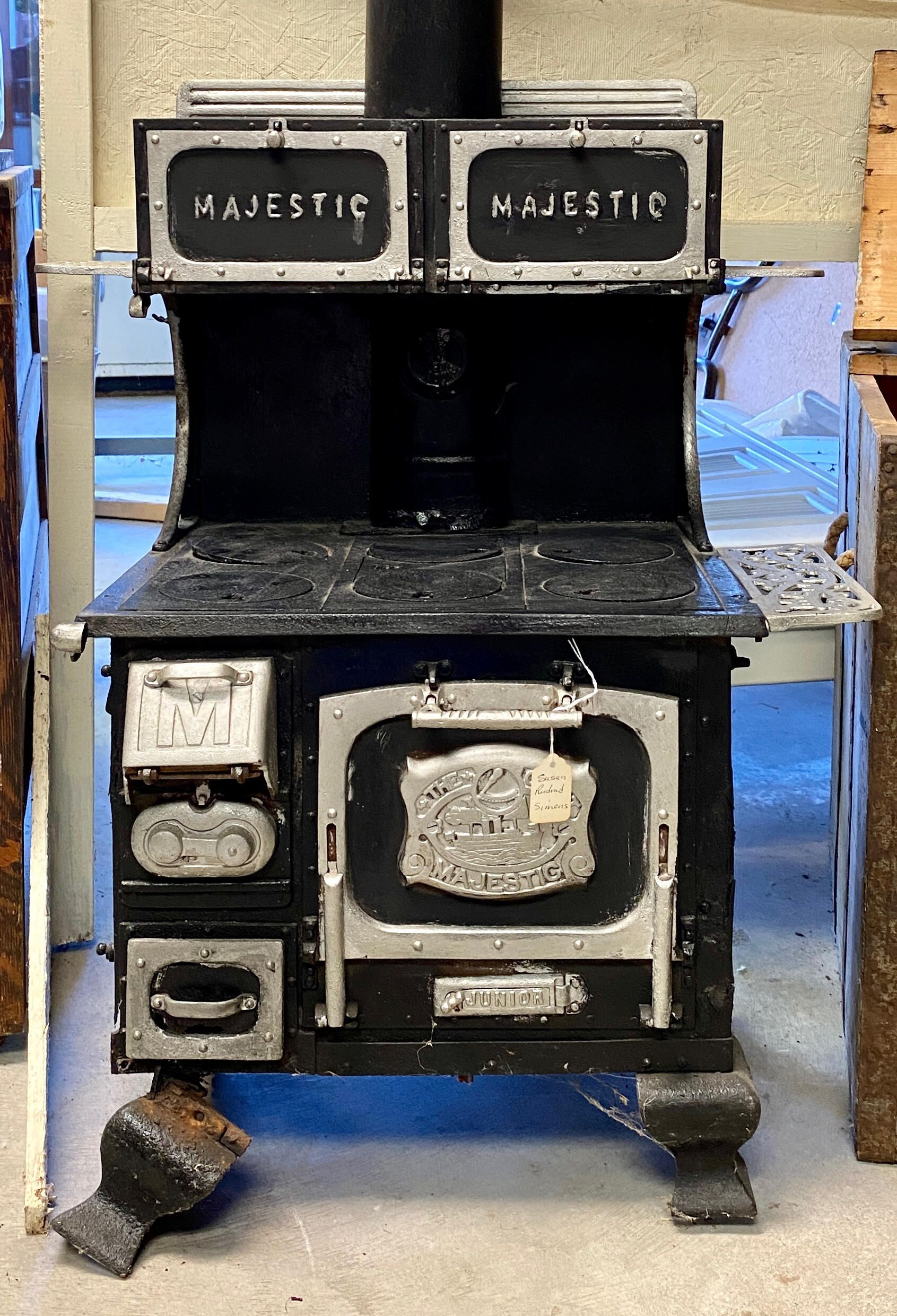 Child’s Majestic Play Cast Iron Stove. This stove was used by Susan Rudrud Simons and her friends when she was little. It was won by Susan's grandfather Ole Rudrud for buying the most lumber when he was a contractor in Hillsboro.Cataloged By