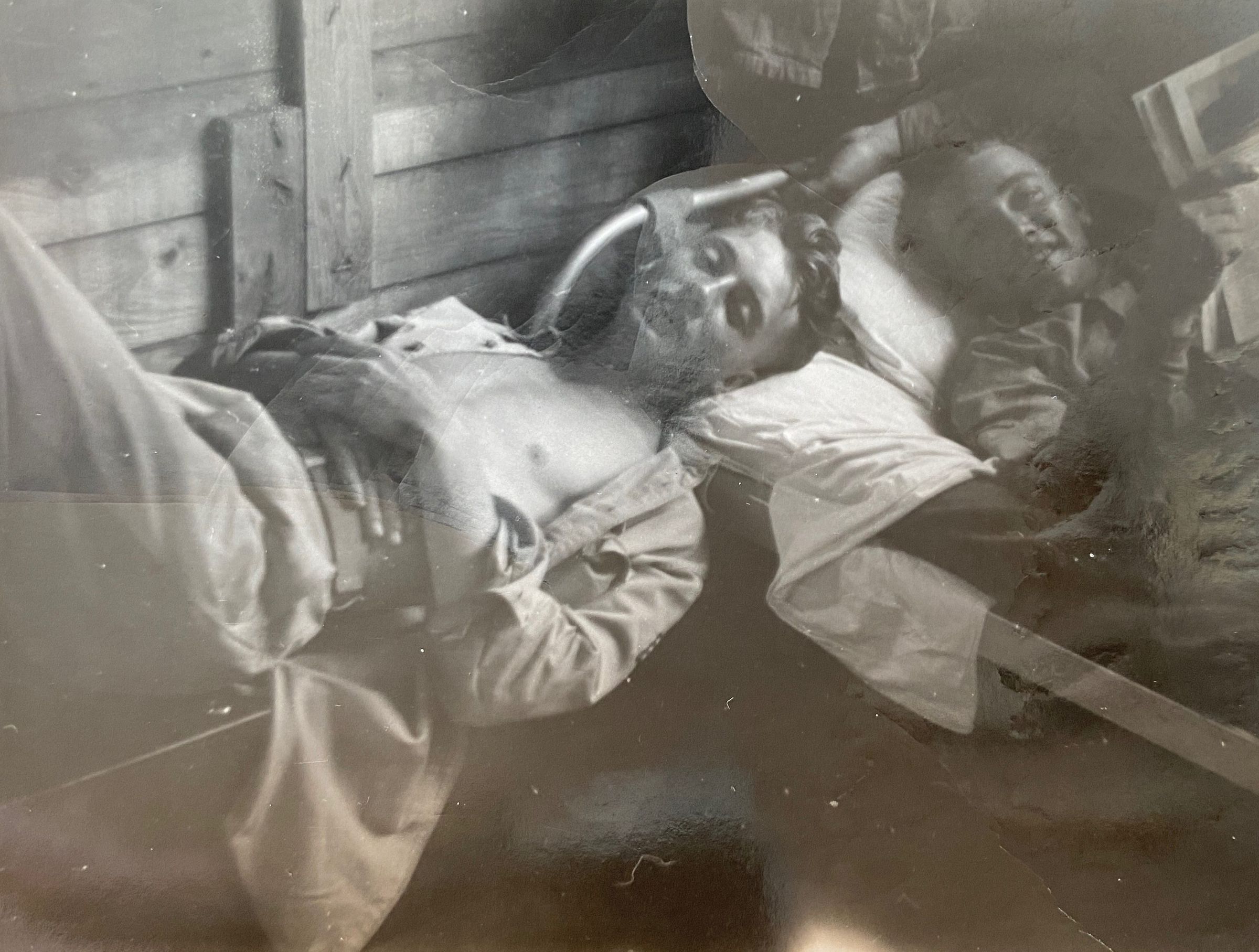 A 1941 photograph of ND Natl. Guard, Company L soldiers Omer Rudrud & Malcolm Larson while training at Camp Claiborne, LA.