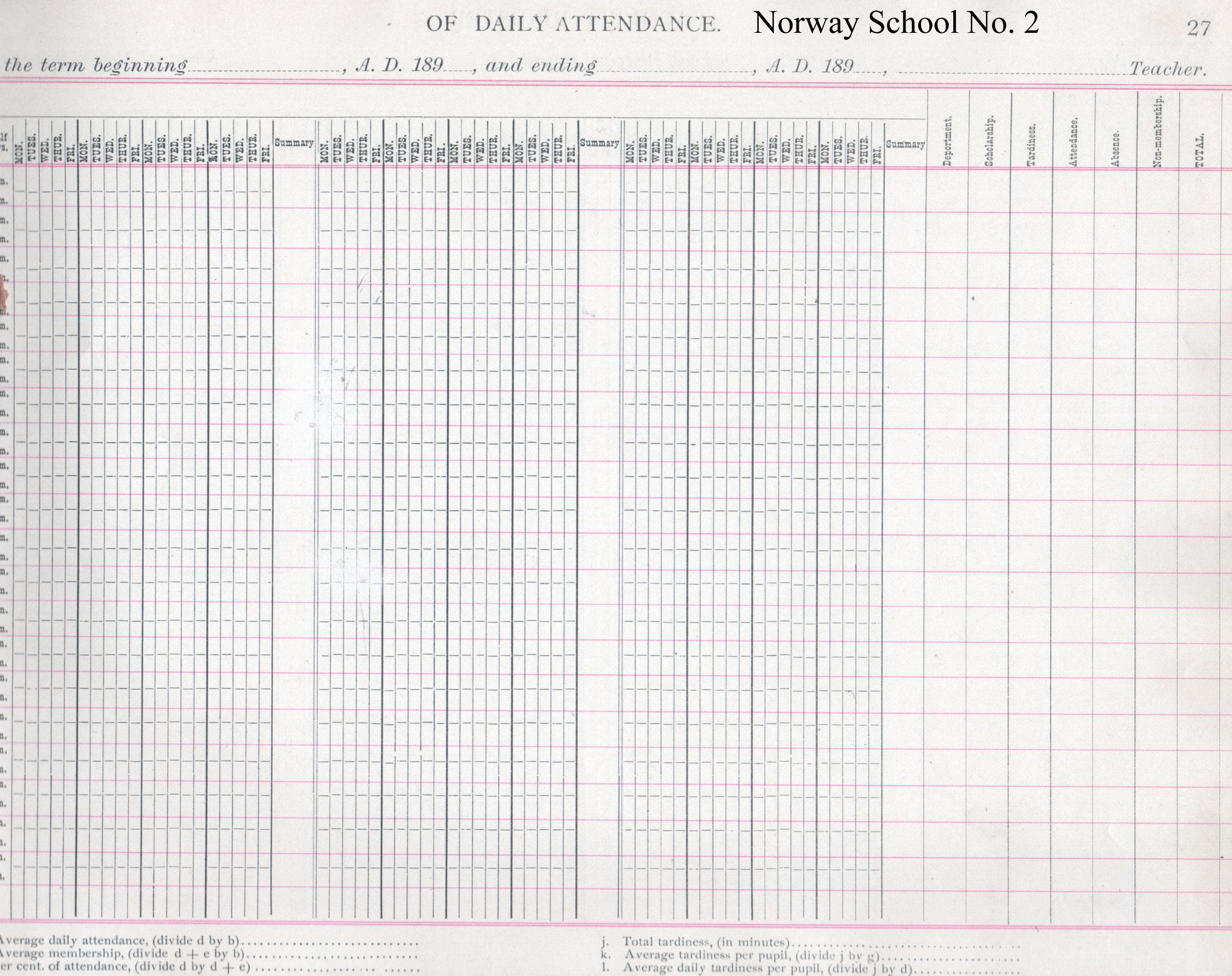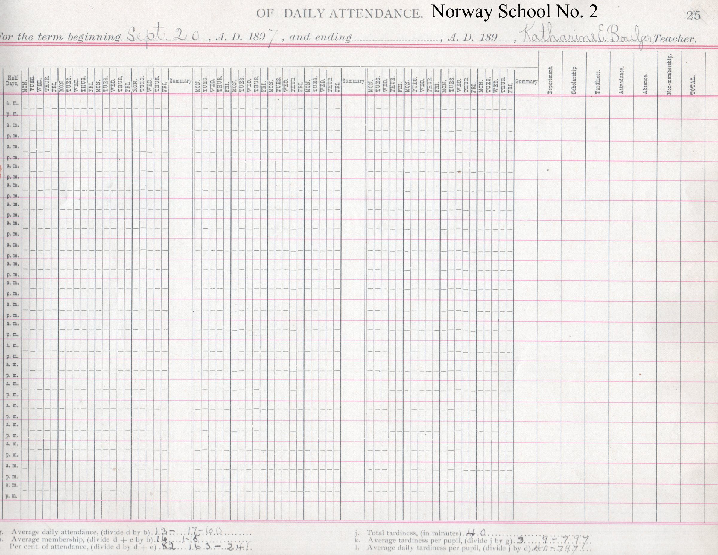Norway School No. 2, 1897 Teacher's Register, Fall TermEntry/Object ID
