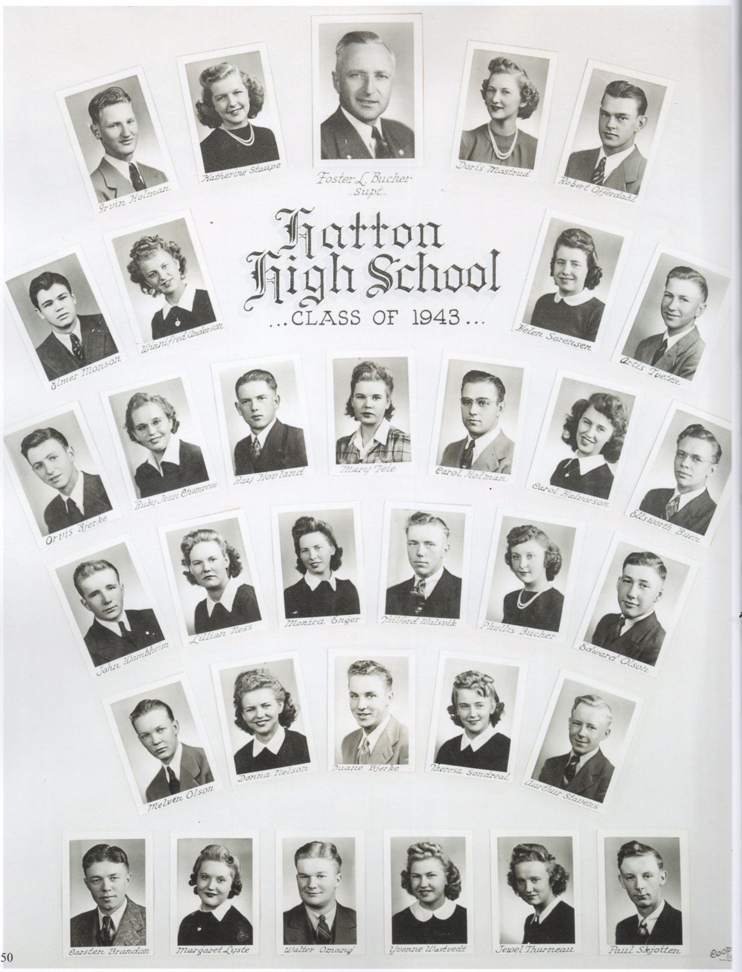 A photograph of the Hatton High School Class of 1943 is included on page 50 in the All School Reunion book, "Hatton Flyers".