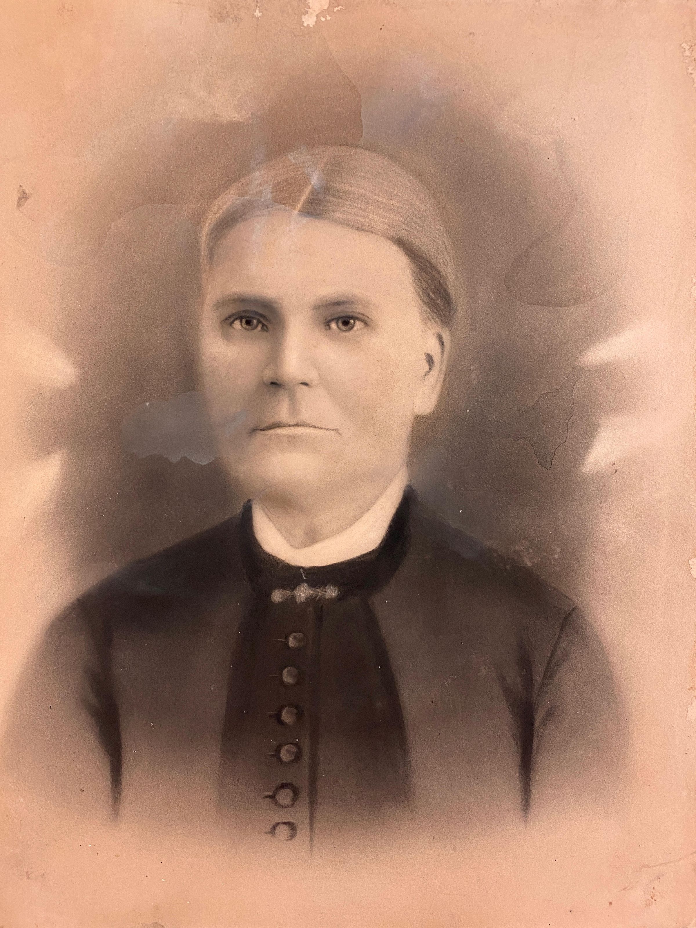 Pencil sketched photograph of Mrs. Andrew (Martha) Sorum