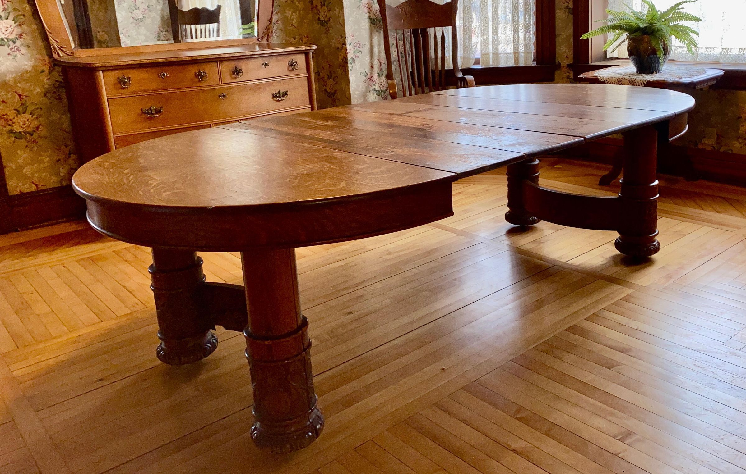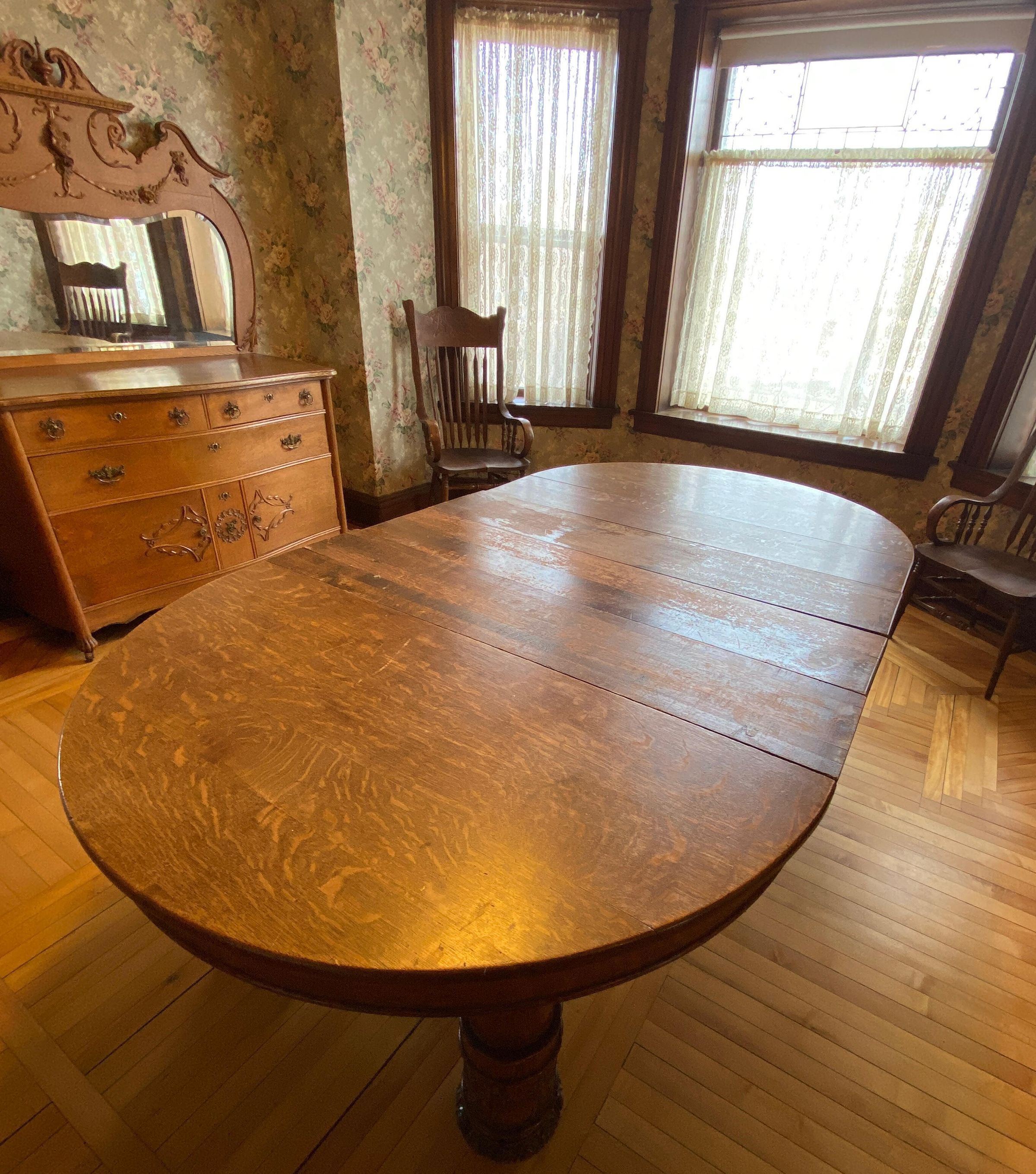 Original Plummer Dining Room Table. This table was used by the Plummer Family while they lived in their home, now the Plummer House Museum. This table was purchased from Tom Warren and returned to the museum in December of 1995.Cataloged By
