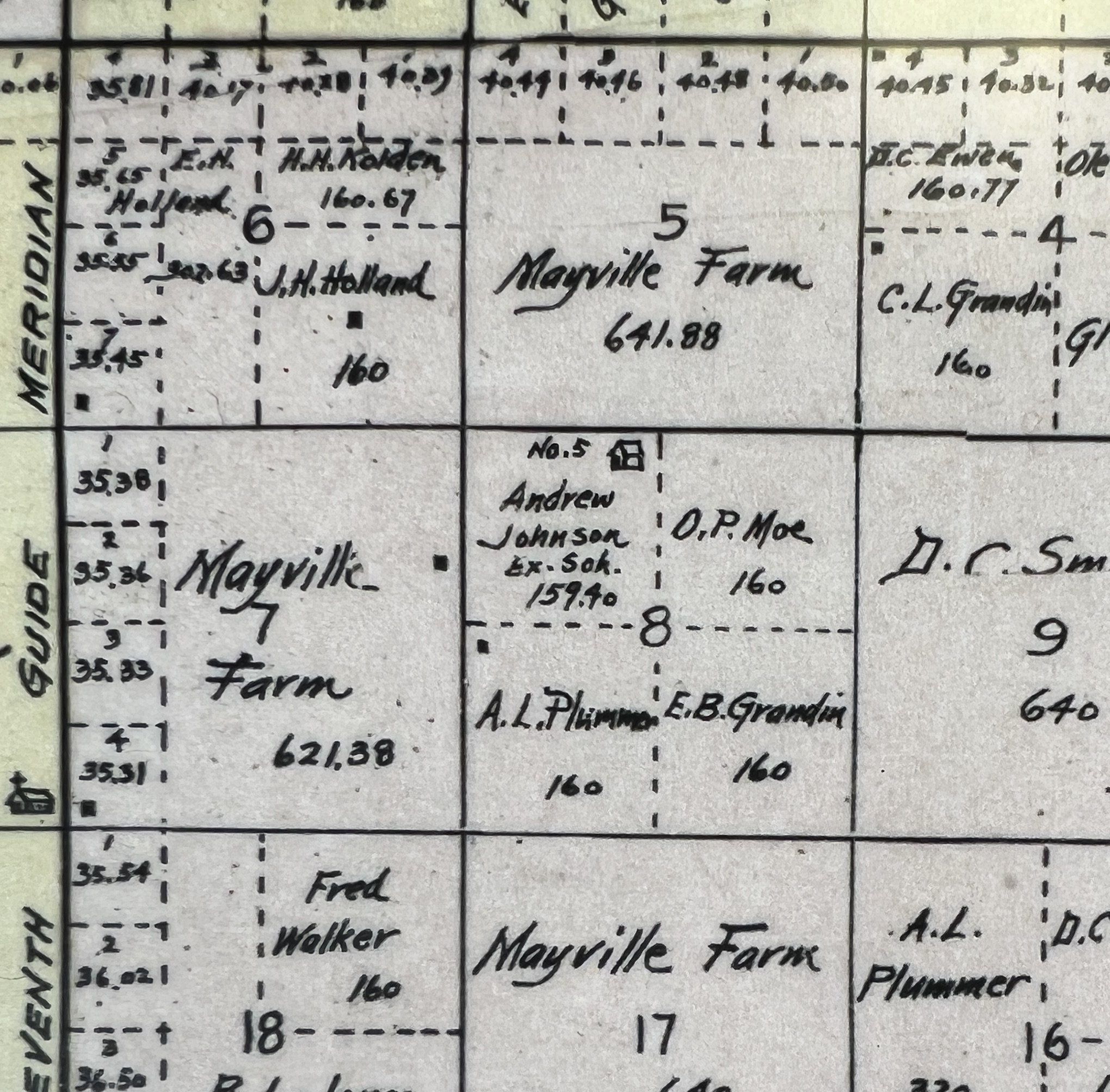 Blanchard Township School No. 5 was located in NW Qtr. of Section 8 (see 1900 map, below), about 7 miles NW of the Village of Blanchard, and about 8 miles S of the City of Mayville.Acquisition