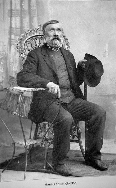 This family history file contains information about the life of Charles L. and Karen (Klomseth) Gordon. Charles L (Chas) Gordon was born on 15 March 1849 to parents Hans Larson Gordon (photo, left) and Kjerste Gordon in Ringsaker, Hedemarken County, Norway. This information is provided on page 64 in "Traill County History (Yesteryears in Traill), Vol I" (below). Other information was kindly provided by Traci (Gordon) Petersen, great granddaughter of Chas Gordon's brother, Lars Gordon. Traci (Gordon) Petersen also provided the website link "www.orneveien.org" where comprehensive family history information is available on Gordon families, such as Chas Gordon, by clicking on "The Scandinavians" under a "Genealogy" heading, and then on "Gordon". This Gordon website provides family trees, maps, cemetery photos, Gordon reunion news and photos, newsletters, and other information (also see Catalogit family history entry 2024-523.1).