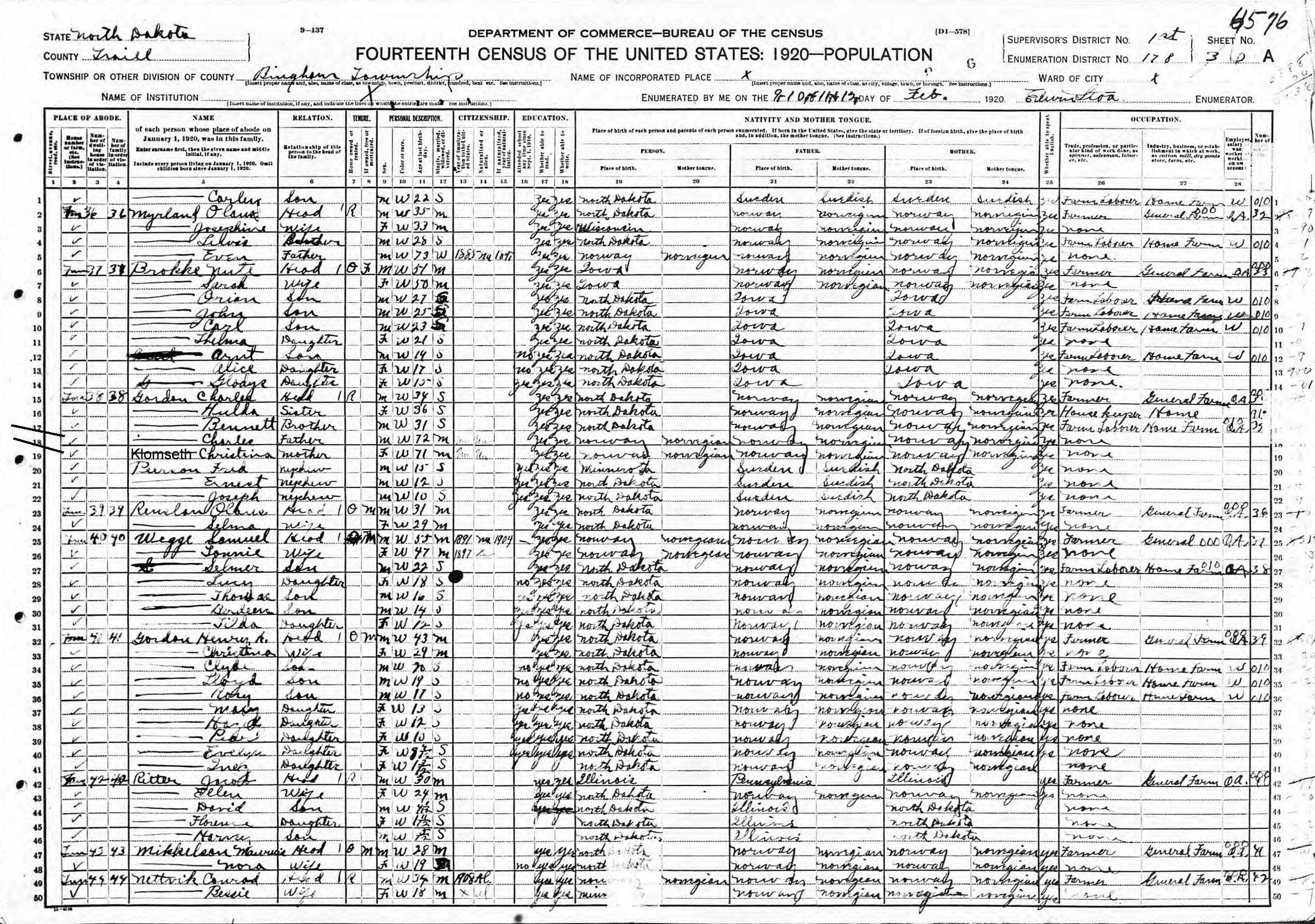 Christina Prestegaarde Klomseth Gordon, passed away, age 84, on 6 June 1932 at home in Bingham Township, and she was interred in the Salem Lutheran Cemetery in Bingham Township (US Find-a-Grave monument, below). About six months later, Charles 'Chas' L. Gordon passed away, age 83, on 20 January 1933 in St. Micheals Hospital in Grand Forks (ND Death Certif.). He was also interred in the Salem Lutheran Cemetery in Bingham Township (US Find-a-Grave monument, below).Acquisition