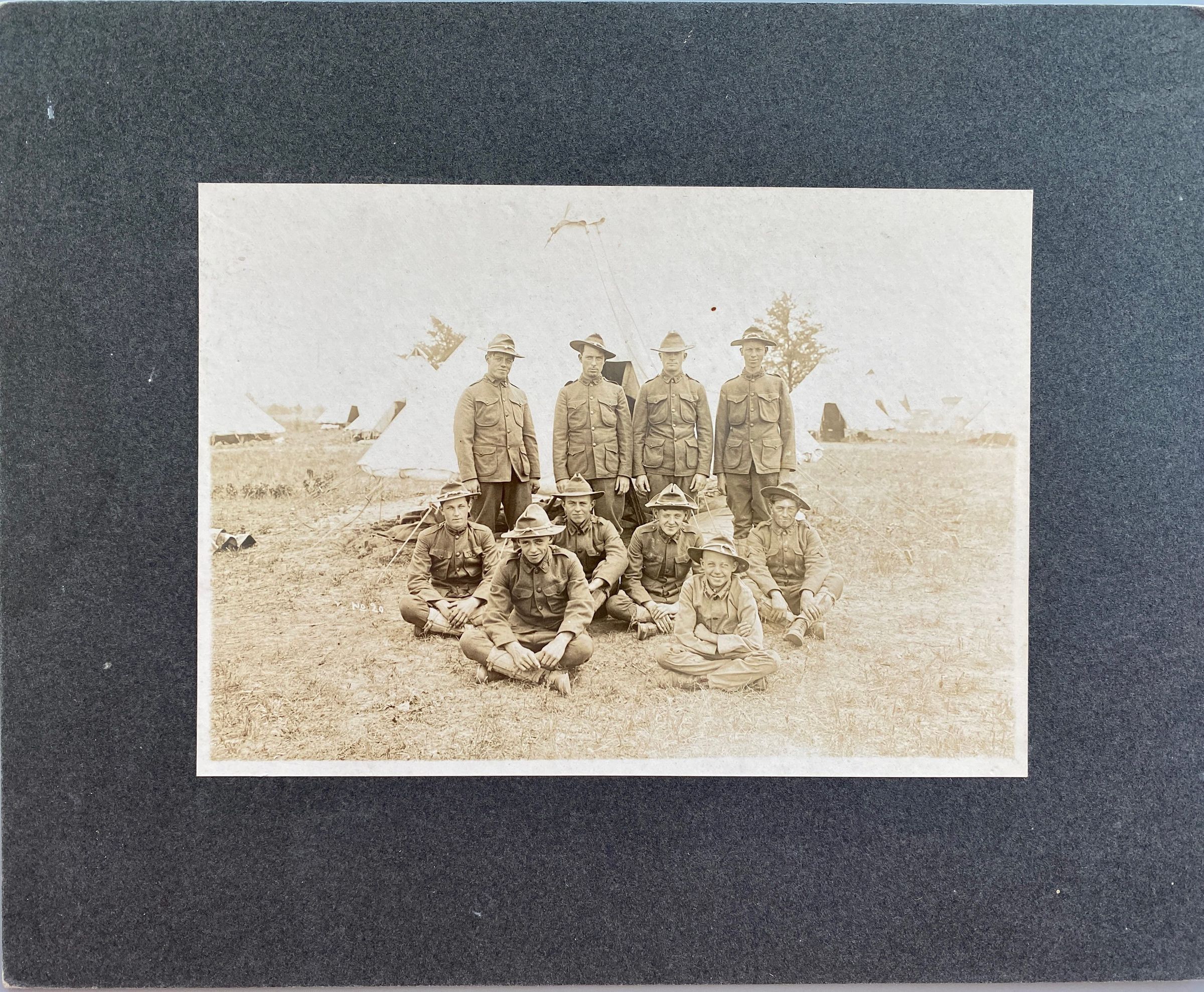 A photograph of Traill County, ND, National Guard Company L soldiers. This photograph from the Palmer Rudrud collection was not labelled on the back but was likely taken at Camp Bruce McCoy, Sparta, WI, in August 1910 when other photos in this collection were taken.Cataloged By