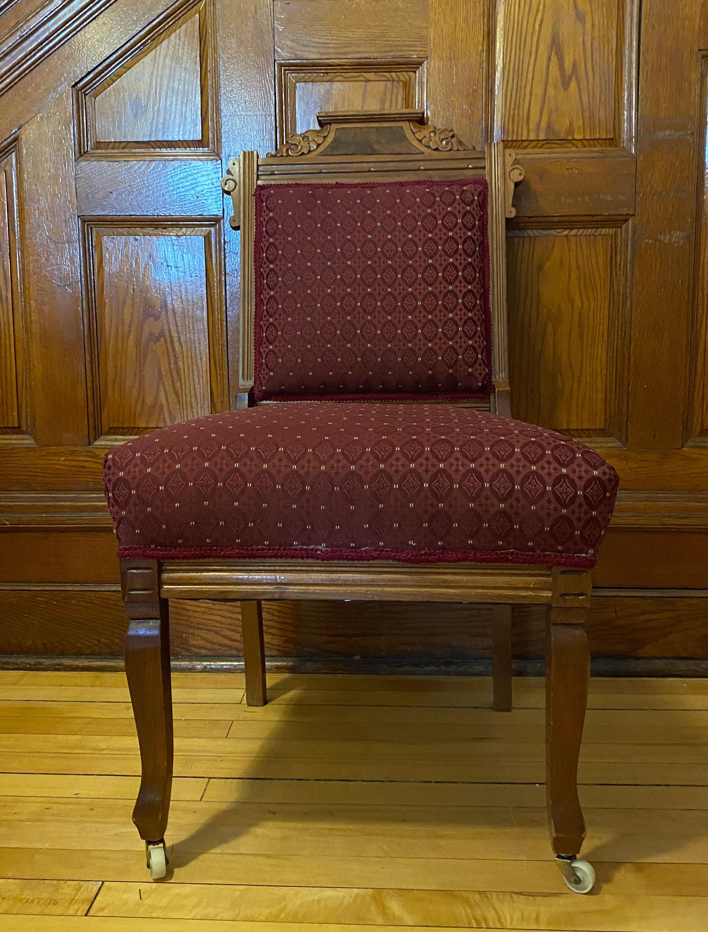 Karen maintained the Elken home for Marguerite Elken who wintered in California and spent summers in Mayville. In the 1970's Marguerite asked Karen to help her clean the attic and offered her any of the old furniture in the attic of which Karen selected this set.Cataloged By