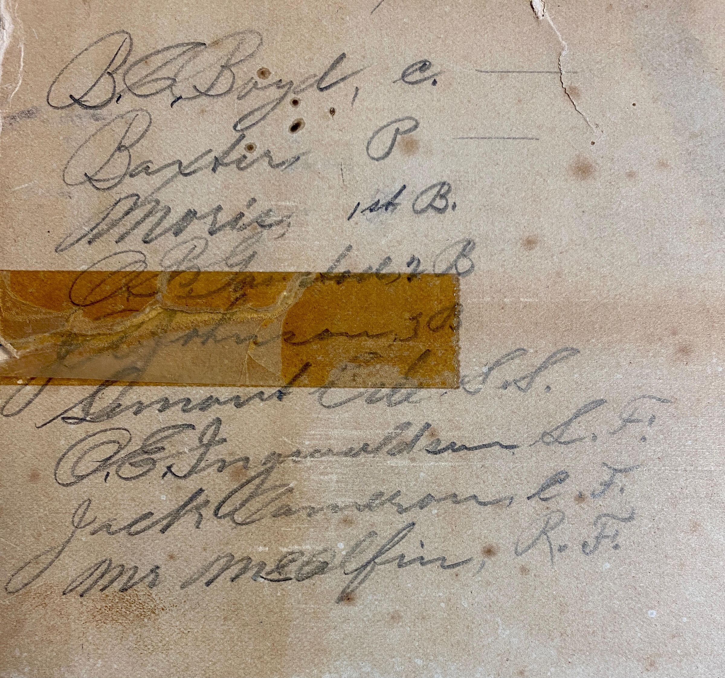 B. C. Boyd - Catcher; Baxter - Pitcher; Moris - First Base; O. P. Gaustad - Second Base; J. A. Johnson - Third Base; Simont Erle - Short Stop; O. E. Ingwaldson - Left Field; Jack Cameron- Center Field; and Mr. McAlfin - Right FieldSubject Person or Organization
