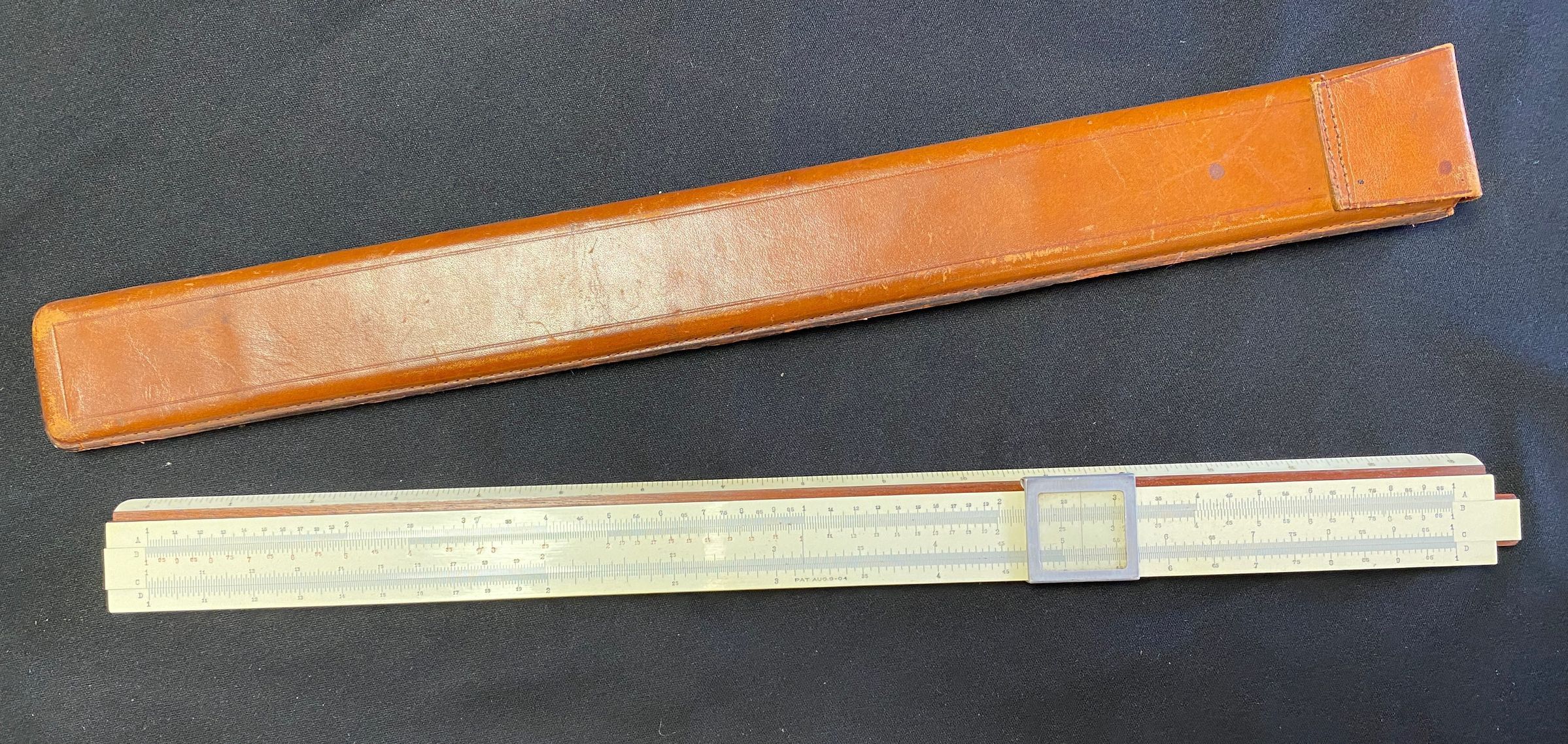 Slide Ruler and Leather Case used by Justin Bagstad while studying surveying at NDSU.Cataloged By