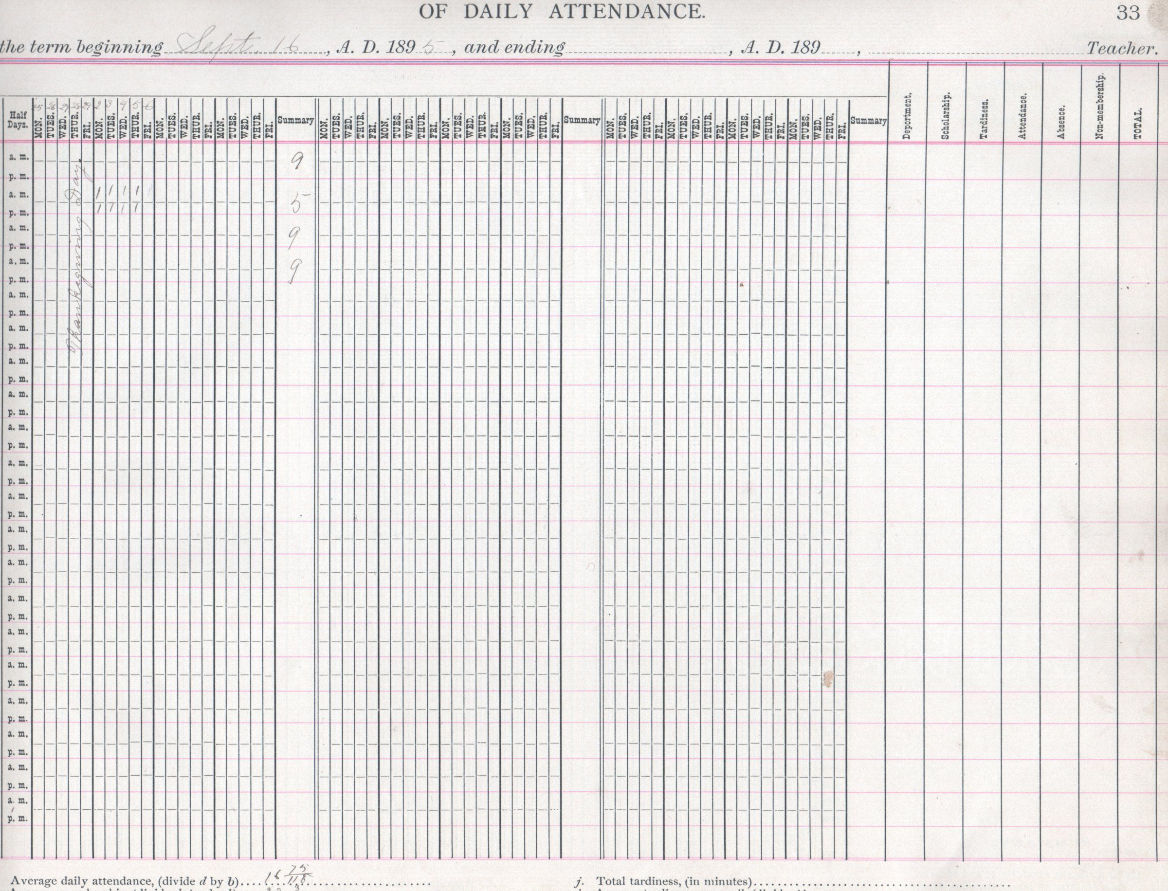 Norway School No. 2, 1895 Teachers Register, Fall TermEntry/Object ID