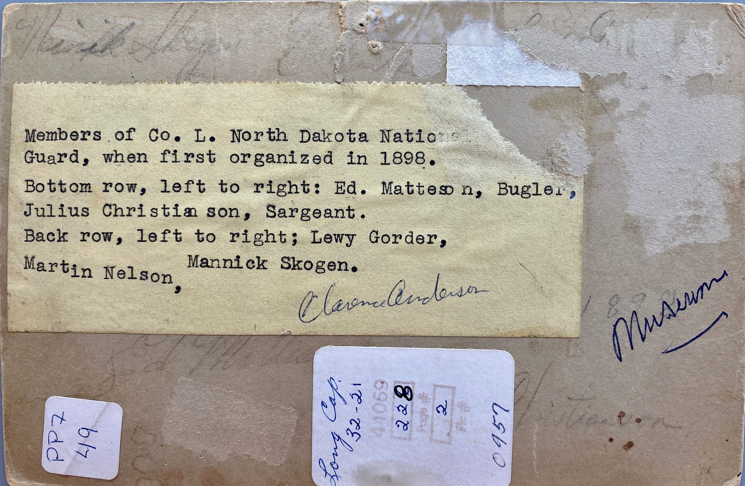 When Company L of the North Dakota National Guard was first organized in 1898, it included five members, as shown in the photograph.