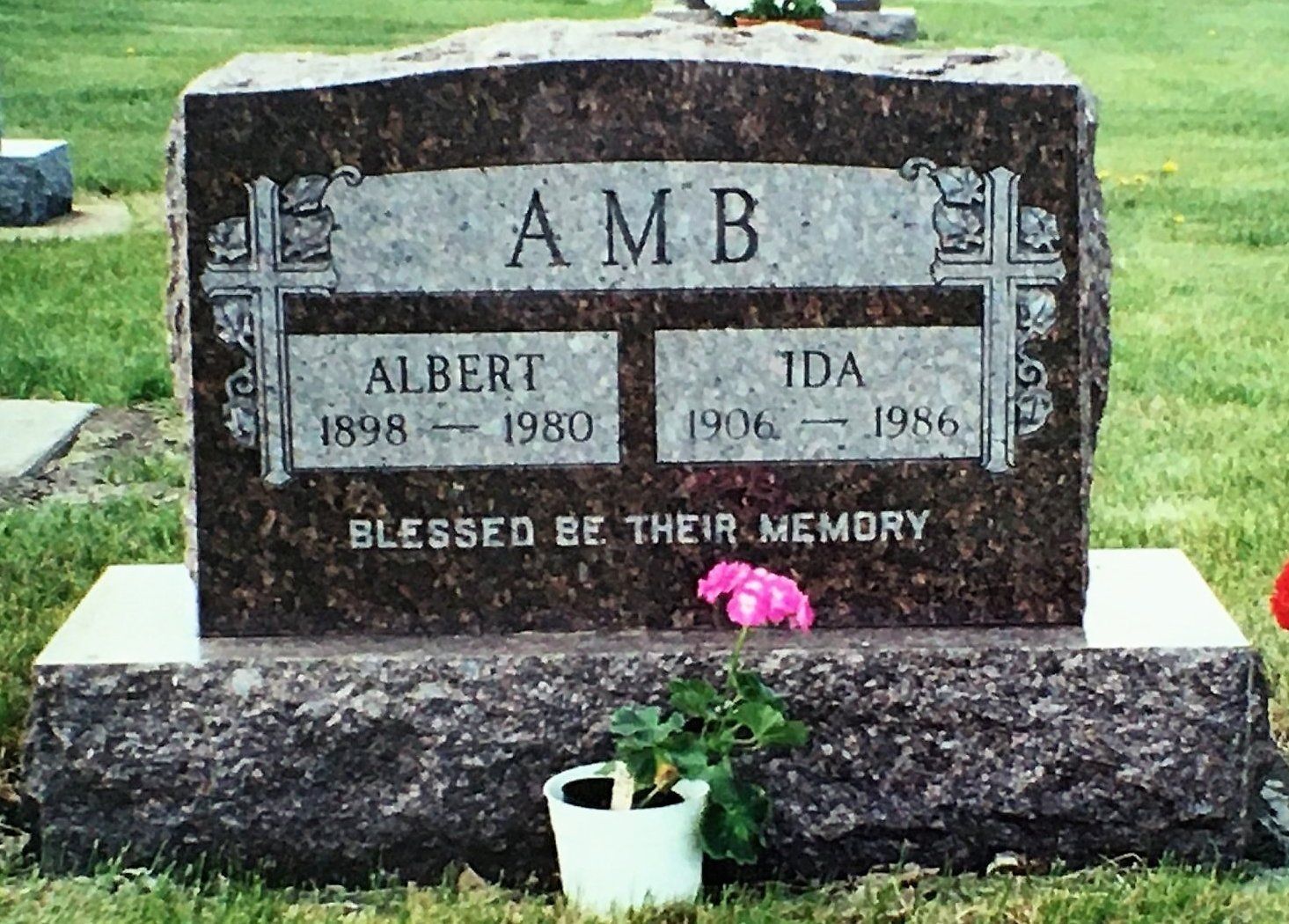 Albert Amb lived to the age of 81, passing away on 31 March 1980 (obituary, below). Ida (Larson) Amb lived to 80, passing away on 26 November 1986 (obituary, below). Albert and Ida Amb were interred in the Bruflat Cemetery, Portland, ND (monument photo, below).Acquisition