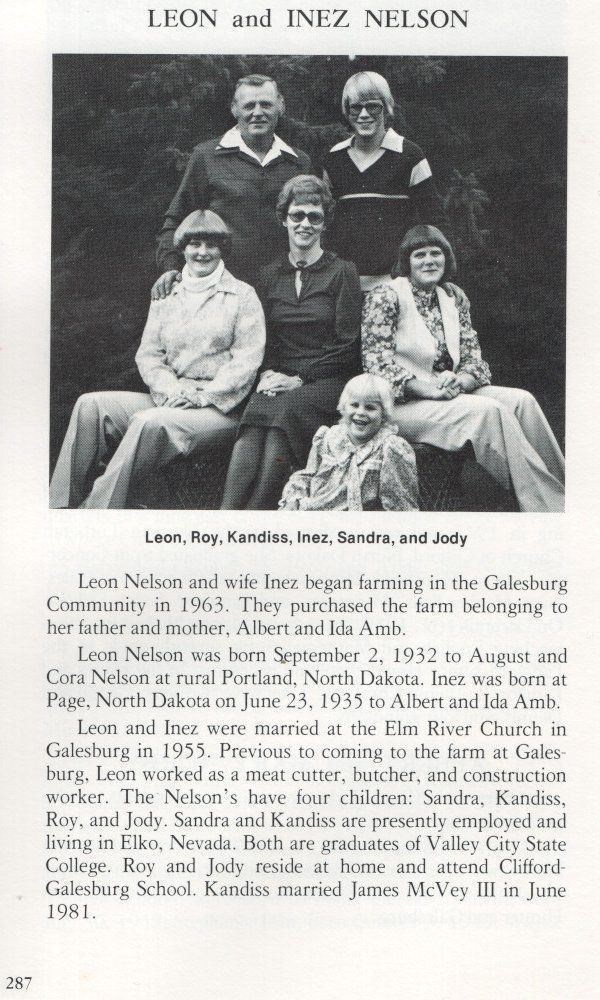 Albert and Ida (Larson) Amb farmed near Galesburg, North Dakota, from the early 1930s to 1963, when they retired to Portland, ND, as described on page 163 in the 1882-1982 Galesburg Centennial book.