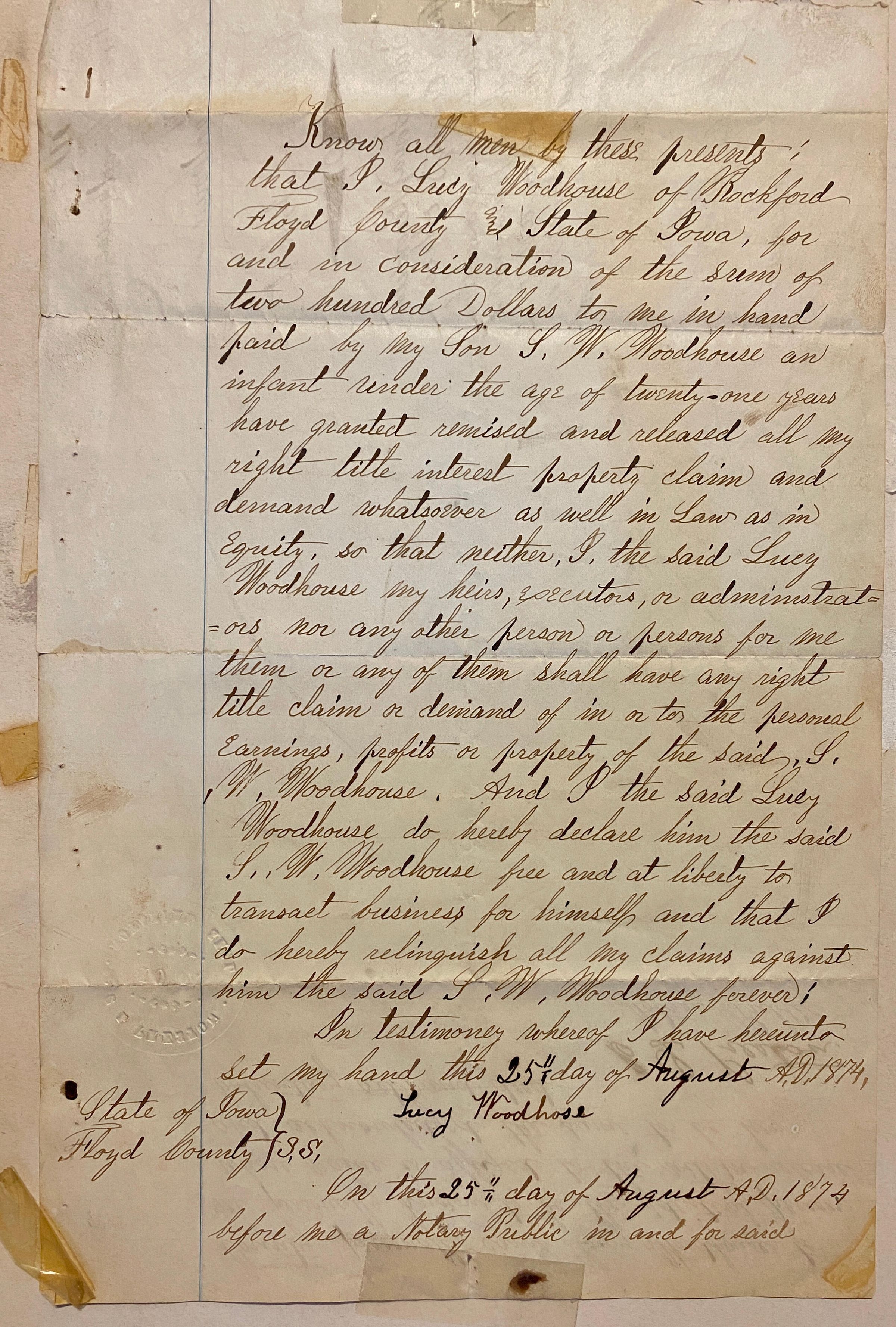 Sale of Property Document from 1874 in Floyd County Iowa.
